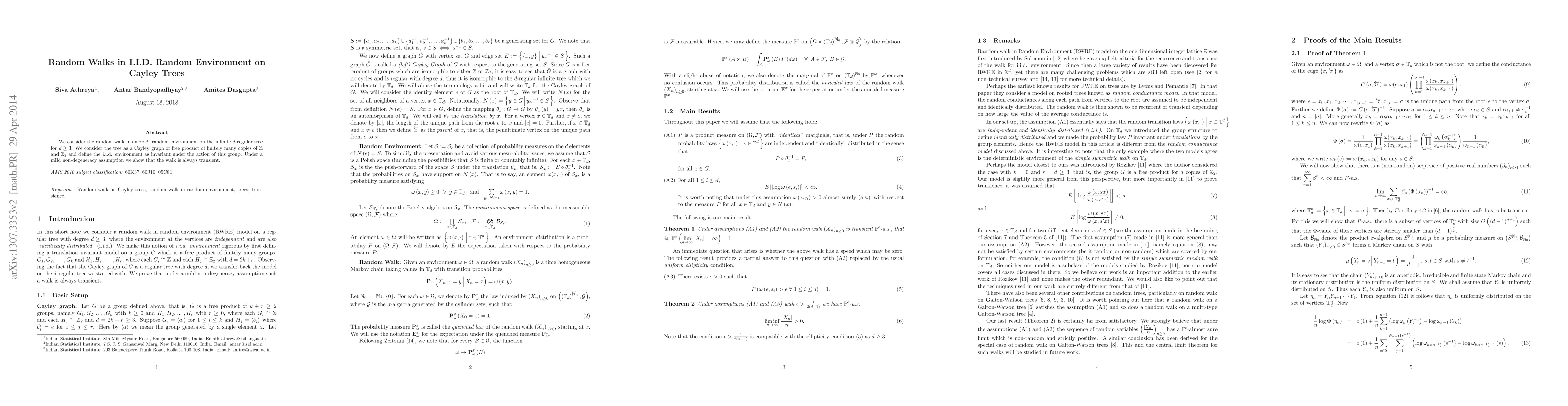 We consider the random walk in an \emph{i.i.d.} random environment on the infinite $d$-regular tree for $d \geq 3$. We consider the tree as a Cayley graph of free product of finitely many copies of $\Zbold$ and $\Zbold_2$ and define the i.i.d. environment as invariant under the action of this group. Under a mild non-degeneracy assumption we show that the walk is always transient.