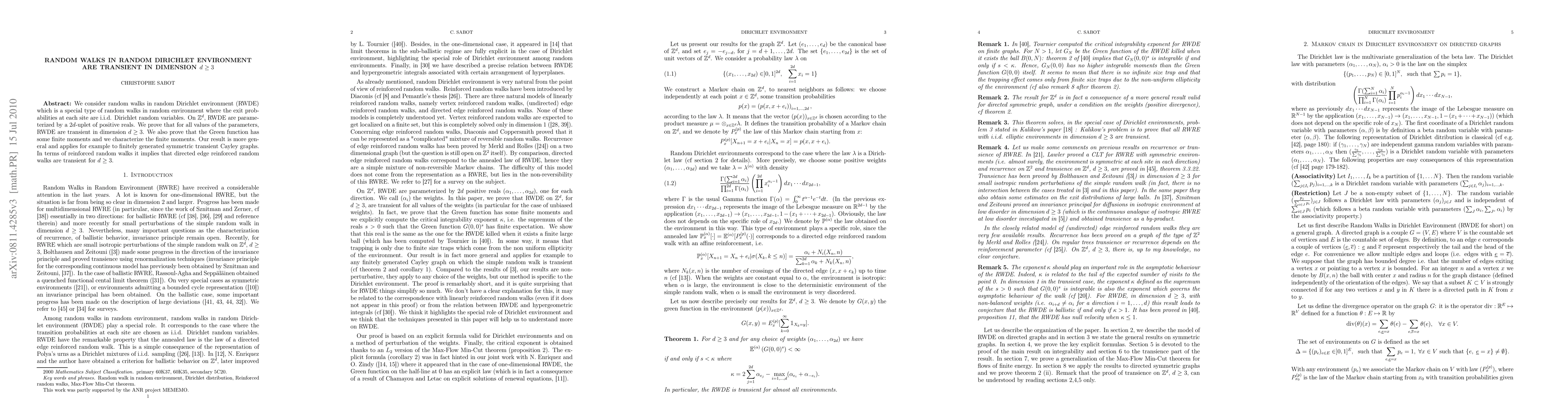 We consider random walks in random Dirichlet environment (RWDE) which is a special type of random walks in random environment where the exit probabilities at each site are i.i.d. Dirichlet random variables. On $\Z^d$, RWDE are parameterized by a $2d$-uplet of positive reals. We prove that for all values of the parameters, RWDE are transient in dimension $d\ge 3$. We also prove that the Green function has some finite moments and we characterize the finite moments. Our result is more general and applies for example to finitely generated symmetric transient Cayley graphs. In terms of reinforced random walks it implies that directed edge reinforced random walks are transient for $d\ge 3$.
