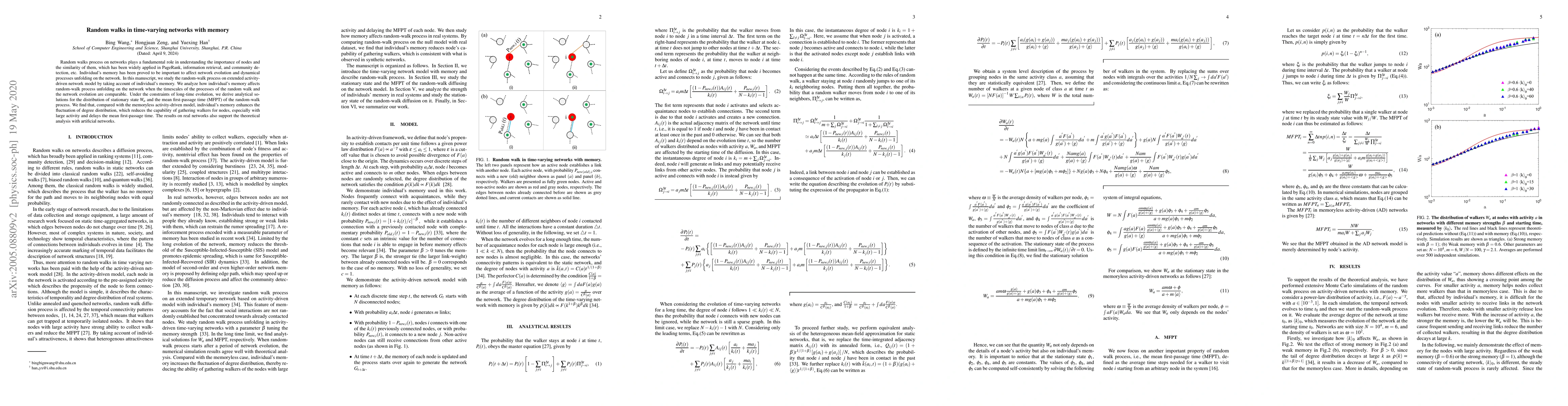 This paper investigates random walks on time-varying networks considering individual memory, finding that memory enhances degree distribution fluctuations and delays mean first-passage time compared to memoryless models. Theoretical analysis is supported by results on both artificial and real networks.