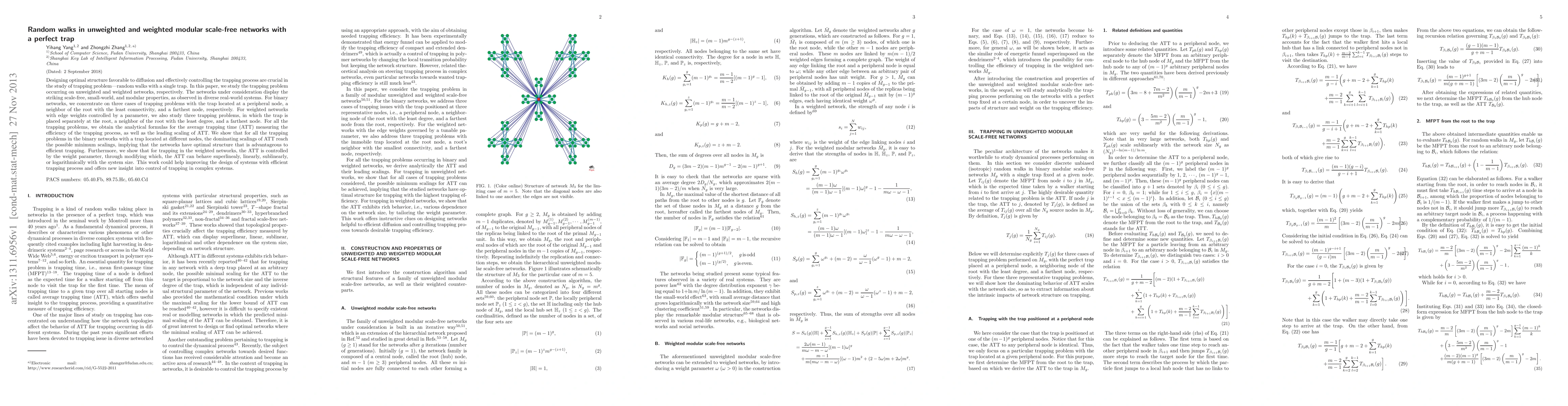Designing optimal structure favorable to diffusion and effectively controlling the trapping process are crucial in the study of trapping problem---random walks with a single trap. In this paper, we study the trapping problem occurring on unweighted and weighted networks, respectively. The networks under consideration display the striking scale-free, small-world, and modular properties, as observed in diverse real-world systems. For binary networks, we concentrate on three cases of trapping problems with the trap located at a peripheral node, a neighbor of the root with the least connectivity, and a farthest node, respectively. For weighted networks with edge weights controlled by a parameter, we also study three trapping problems, in which the trap is placed separately at the root, a neighbor of the root with the least degree, and a farthest node. For all the trapping problems, we obtain the analytical formulas for the average trapping time (ATT) measuring the efficiency of the trapping process, as well as the leading scaling of ATT. We show that for all the trapping problems in the binary networks with a trap located at different nodes, the dominating scalings of ATT reach the possible minimum scalings, implying that the networks have optimal structure that is advantageous to efficient trapping. Furthermore, we show that for trapping in the weighted networks, the ATT is controlled by the weight parameter, through modifying which, the ATT can behave superlinealy, linearly, sublinearly, or logarithmically with the system size. This work could help improving the design of systems with efficient trapping process and offers new insight into control of trapping in complex systems.