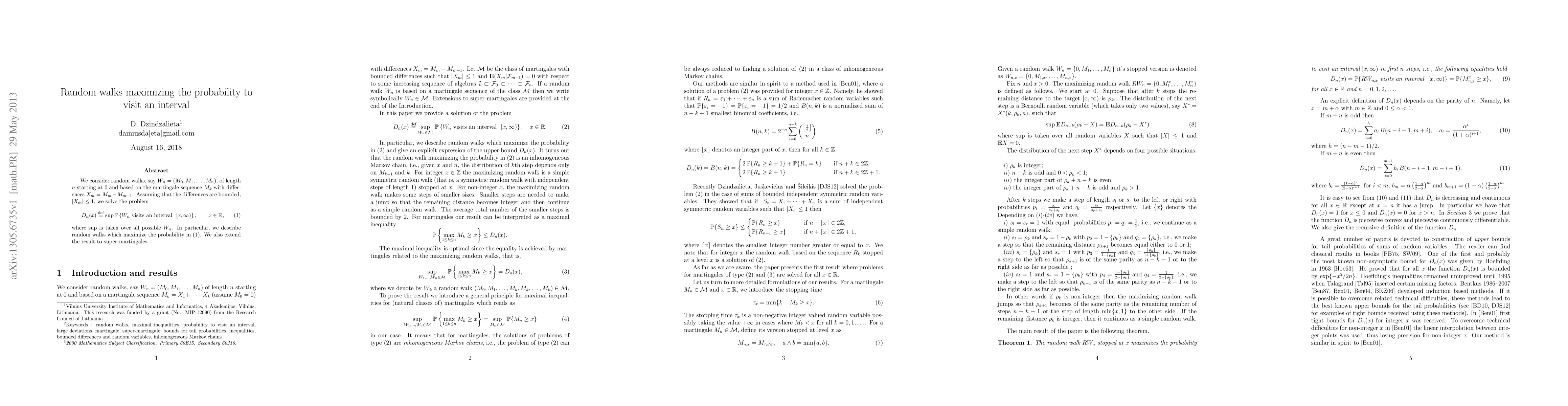 We consider random walks, say $W_n=(M_0, M_1,\dots, M_n)$, of length $n$ starting at 0 and based on the martingale sequence $M_k$ with differences $X_m=M_m-M_{m-1}$. Assuming that the differences are bounded, $|X_m|\leq 1$, we solve the problem \begin{equation} D_n(x)\=\sup P \left\{W_n \ \text{visits an interval}\ [x,\infty)\right\},\qquad x\in R, \label{piirma} \end{equation} where $\sup$ is taken over all possible $W_n$. In particular, we describe random walks which maximize the probability in $\eqref{piirma}$. We also extend the result to super-martingales.
