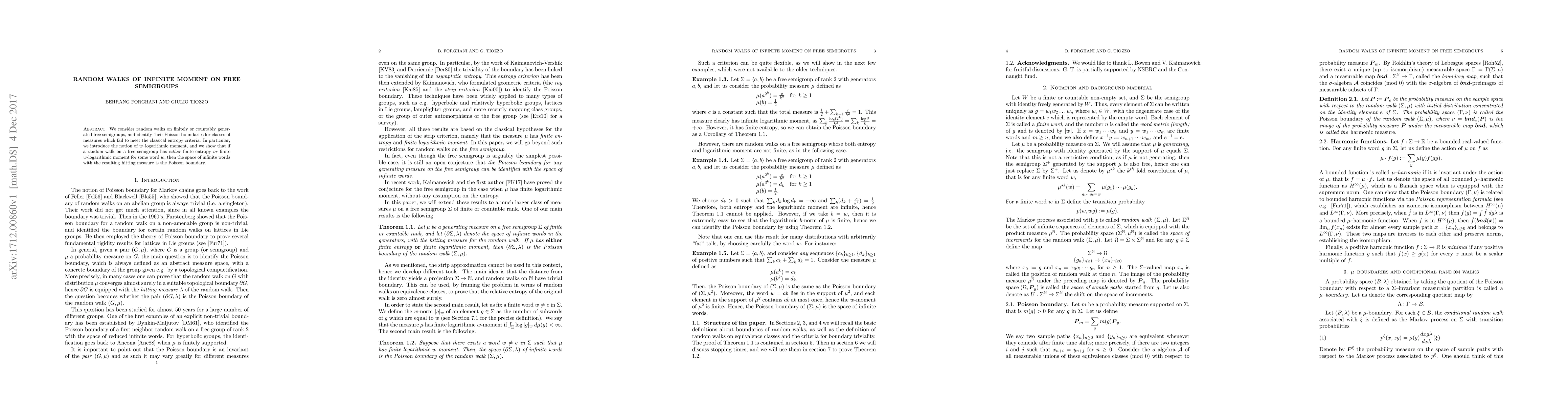 This paper investigates random walks on free semigroups, identifying their Poisson boundaries for certain classes of measures without meeting classical entropy criteria. It introduces the concept of w-logarithmic moment to determine whether a space is the Poisson boundary for such walks.