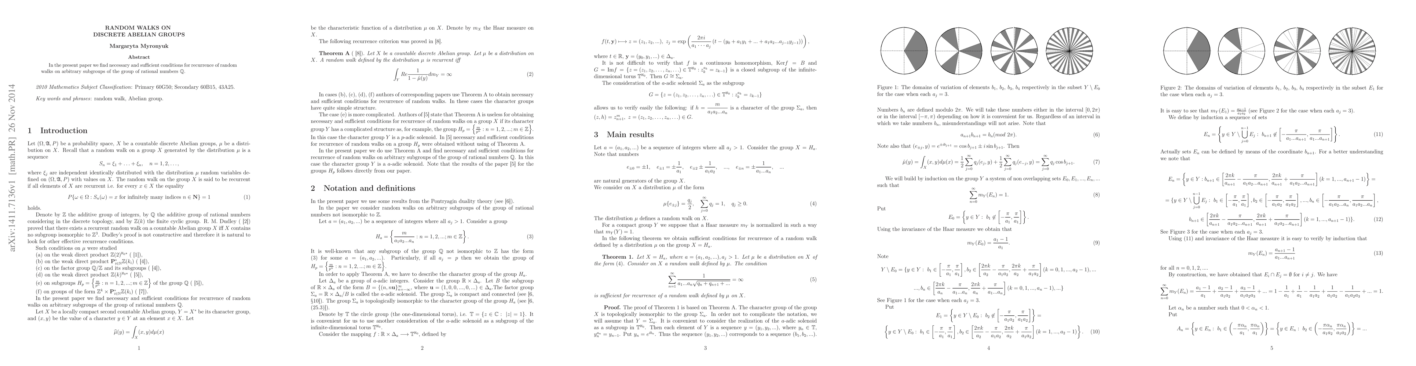 The paper presents a detailed analysis of random walks on arbitrary subgroups of the rational numbers $\mathbb{Q}$, deriving necessary and sufficient conditions for recurrence using inductive construction of sets $E_n$ and Haar measure invariance.