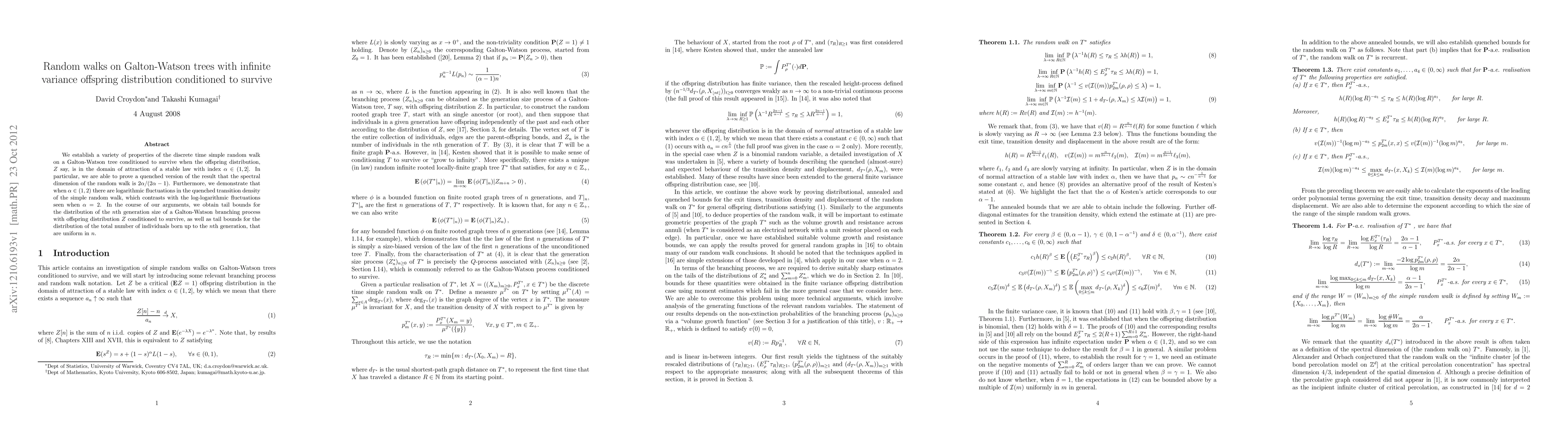 This paper explores properties of a random walk on a Galton-Watson tree conditioned to survive, where the offspring distribution follows a stable law with infinite variance. It establishes a quenched spectral dimension and reveals logarithmic fluctuations in the transition density for $\alpha \in (1,2)$, contrasting with log-logarithmic fluctuations when $\alpha=2$.