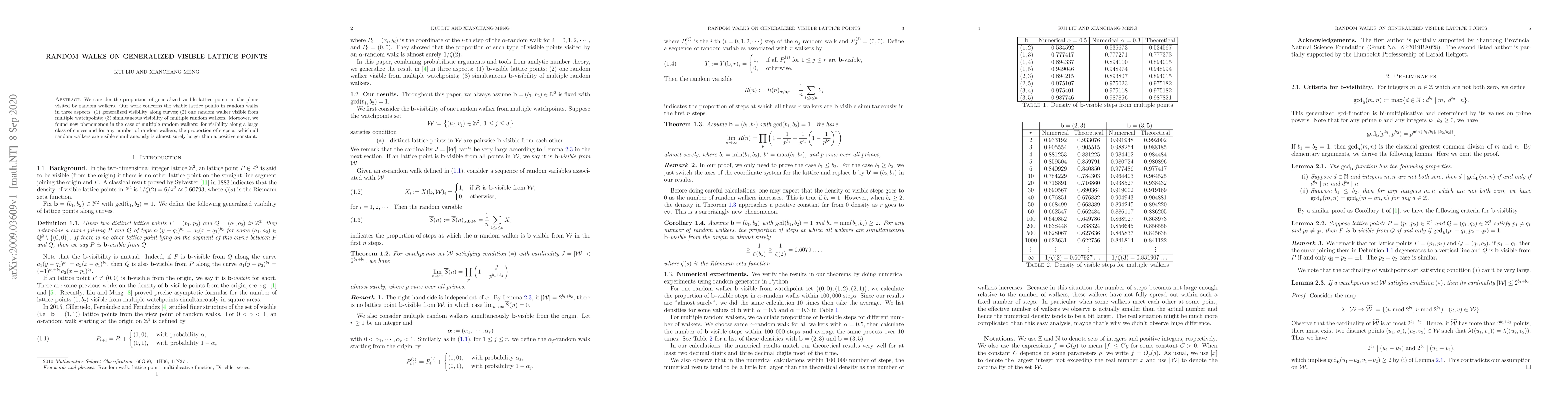 This paper investigates the proportion of generalized visible lattice points visited by random walkers, focusing on visibility along curves, single vs. multiple watchpoints, and simultaneous visibility of multiple random walkers. It reveals a new phenomenon: the proportion of steps where all random walkers are simultaneously visible is almost surely greater than a positive constant for a broad class of curves and any number of walkers.