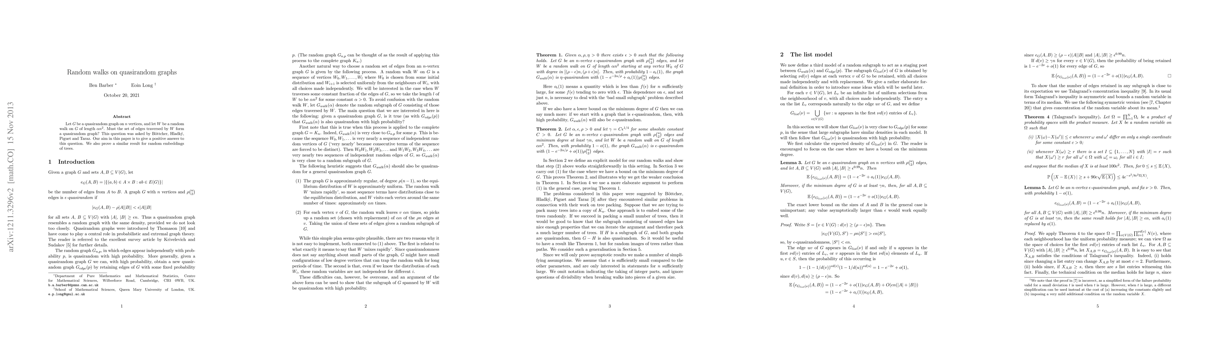 A research paper answers a question about whether the edges of a long random walk on a quasirandom graph form another quasirandom graph. It provides a positive answer to this question and extends the result to random embeddings of trees.