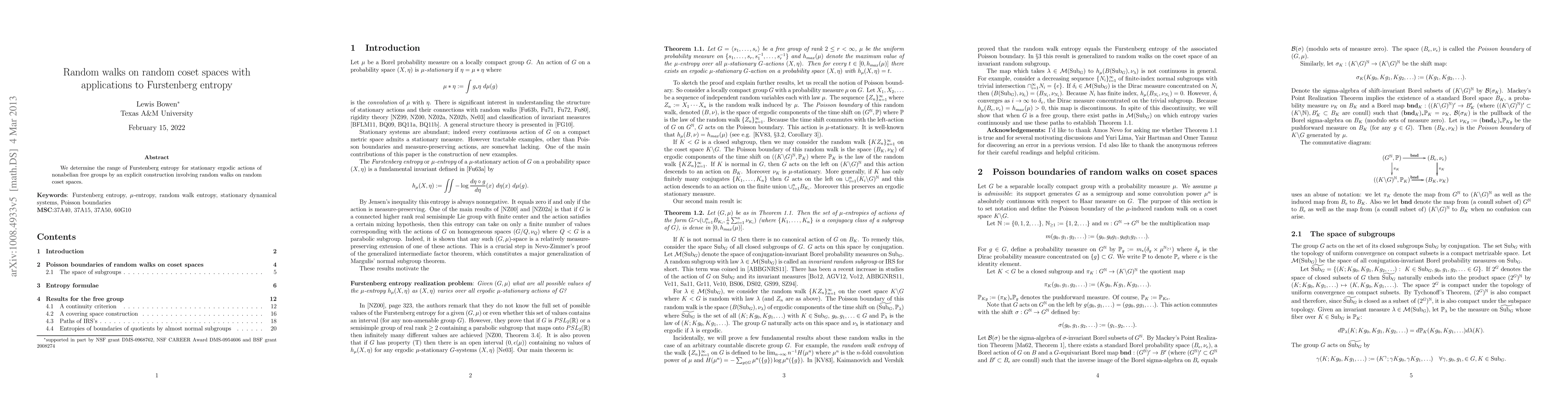 Summary: This paper identifies the range of Furstenberg entropy for stationary ergodic actions of nonabelian free groups through a construction using random walks on random coset spaces. The findings have implications for understanding entropy in dynamical systems.