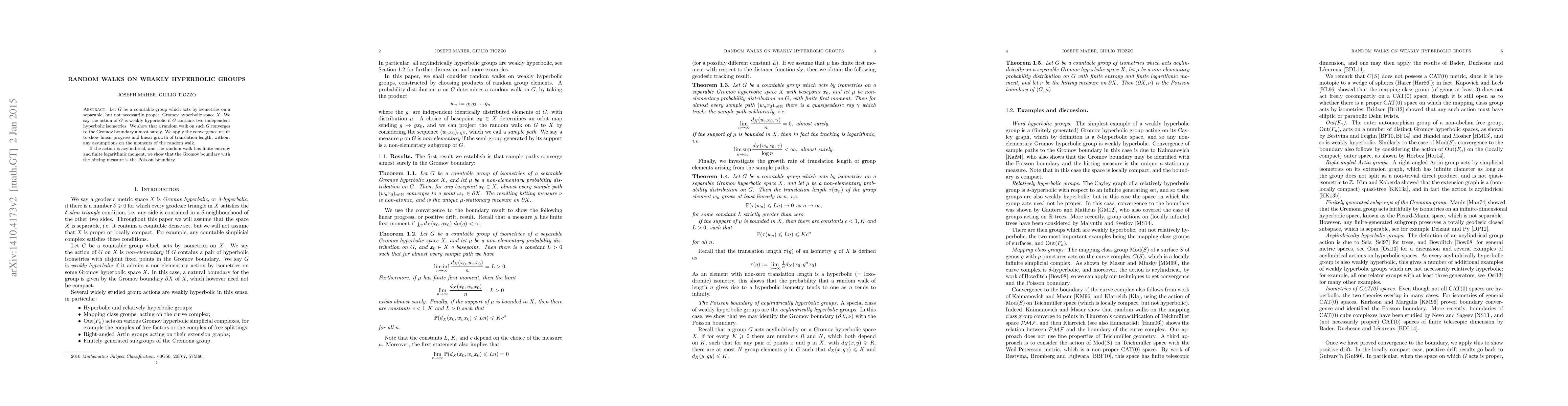 This paper investigates random walks on countable groups acting weakly hyperbolically on a Gromov hyperbolic space. It demonstrates that such random walks converge almost surely to the Gromov boundary and exhibit linear progress and growth in translation length. Additionally, under acylindrical action conditions and finite entropy, the Gromov boundary with the hitting measure is identified as the Poisson boundary.
