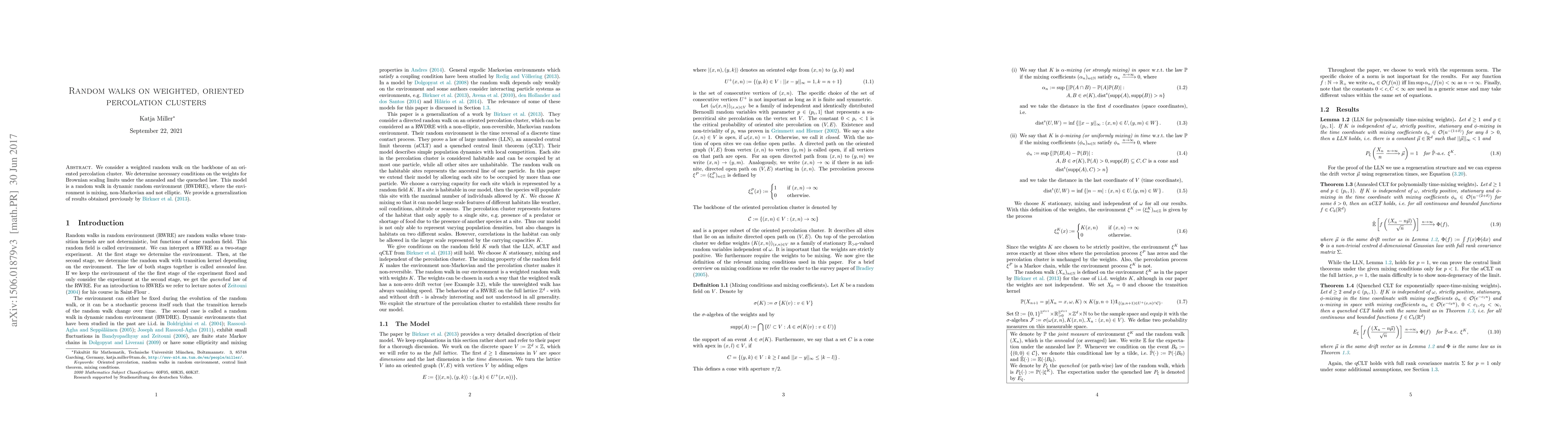 This paper investigates weighted random walks on the backbone of oriented percolation clusters, establishing necessary conditions for their Brownian scaling limits under both annealed and quenched laws. It generalizes earlier findings by Birkner et al. (2013) for a non-Markovian, mixing dynamic random environment.