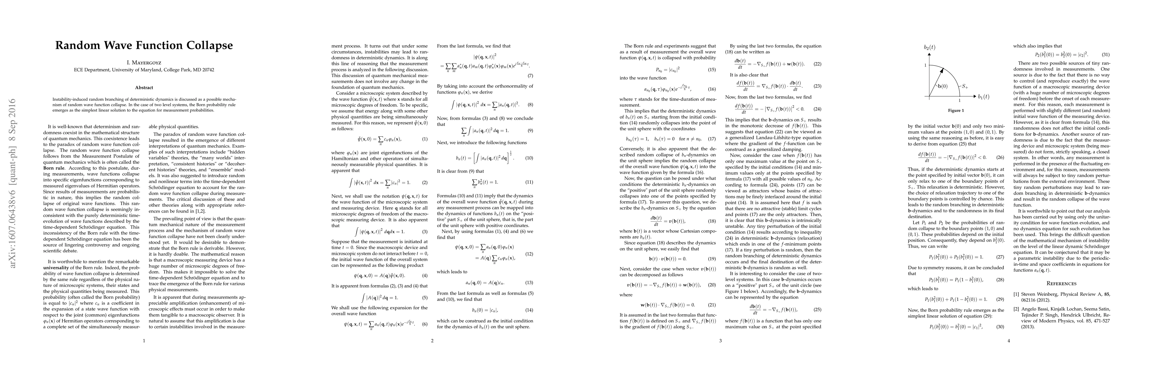 Researchers propose that random wave function collapse in quantum systems could arise from instability-induced branching of deterministic dynamics, leading to the emergence of the Born probability rule.