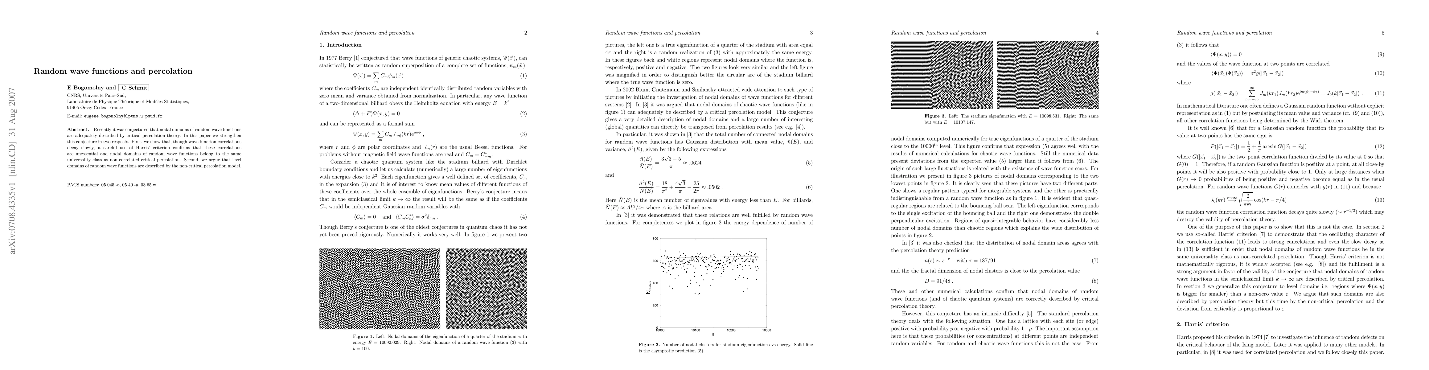 This paper strengthens the conjecture that nodal domains of random wave functions align with critical percolation theory by demonstrating that despite slow decay in wave function correlations, they do not affect the universality class, and it also argues that level domains of random wave functions follow a non-critical percolation model.