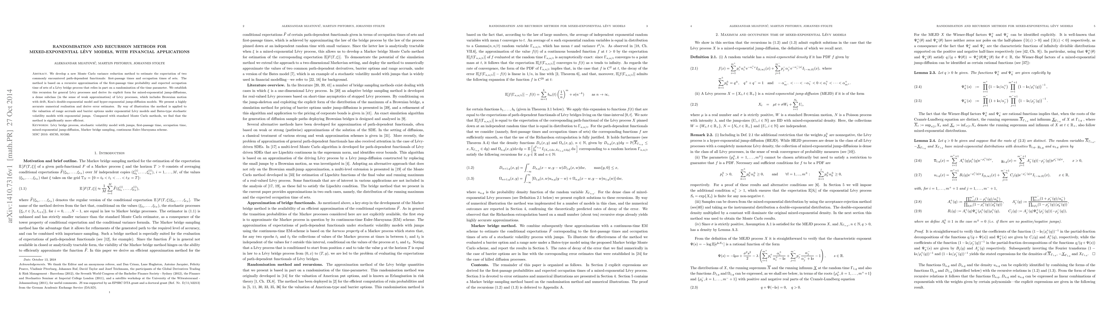 We develop a new Monte Carlo variance reduction method to estimate the expectation of two commonly encountered path-dependent functionals: first-passage times and occupation times of sets. The method is based on a recursive approximation of the first-passage time probability and expected occupation time of sets of a Levy bridge process that relies in part on a randomisation of the time parameter. We establish this recursion for general Levy processes and derive its explicit form for mixed-exponential jump-diffusions, a dense subclass (in the sense of weak approximation) of Levy processes, which includes Brownian motion with drift, Kou's double-exponential model and hyper-exponential jump-diffusion models. We present a highly accurate numerical realisation and derive error estimates. By way of illustration the method is applied to the valuation of range accruals and barrier options under exponential Levy models and Bates-type stochastic volatility models with exponential jumps. Compared with standard Monte Carlo methods, we find that the method is significantly more efficient.