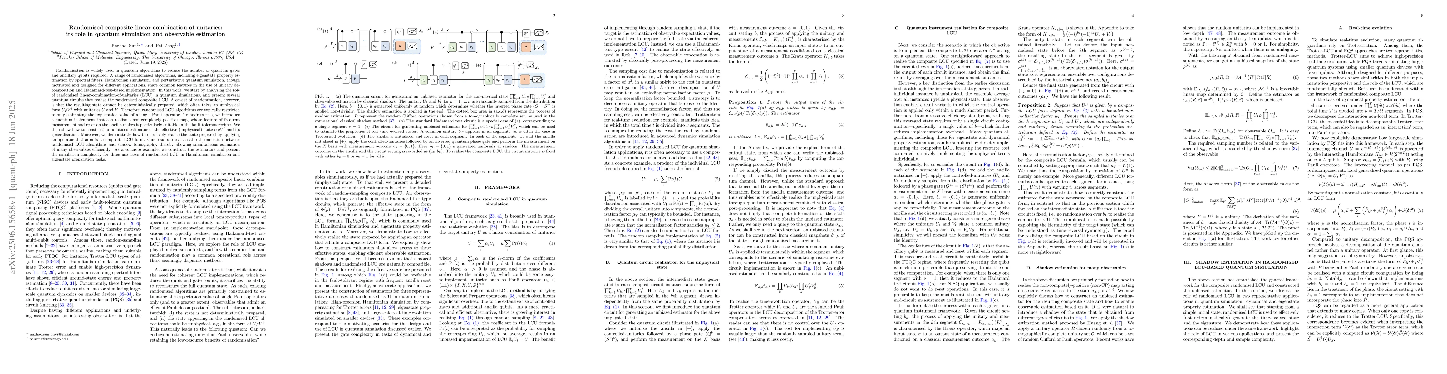 Randomisation is widely used in quantum algorithms to reduce the number of quantum gates and ancillary qubits required. A range of randomised algorithms, including eigenstate property estimation by spectral filters, Hamiltonian simulation, and perturbative quantum simulation, though motivated and designed for different applications, share common features in the use of unitary decomposition and Hadamard-test-based implementation. In this work, we start by analysing the role of randomised linear-combination-of-unitaries (LCU) in quantum simulations, and present several quantum circuits that realise the randomised composite LCU. A caveat of randomisation, however, is that the resulting state cannot be deterministically prepared, which often takes an unphysical form $U \rho V^\dagger$ with unitaries $U$ and $V$. Therefore, randomised LCU algorithms are typically restricted to only estimating the expectation value of a single Pauli operator. To address this, we introduce a quantum instrument that can realise a non-completely-positive map, whose feature of frequent measurement and reset on the ancilla makes it particularly suitable in the fault-tolerant regime. We then show how to construct an unbiased estimator of the effective (unphysical) state $U \rho V^\dagger$ and its generalisation. Moreover, we demonstrate how to effectively realise the state prepared by applying an operator that admits a composite LCU form. Our results reveal a natural connection between randomised LCU algorithms and shadow tomography, thereby allowing simultaneous estimation of many observables efficiently. As a concrete example, we construct the estimators and present the simulation complexity for three use cases of randomised LCU in Hamiltonian simulation and eigenstate preparation tasks.