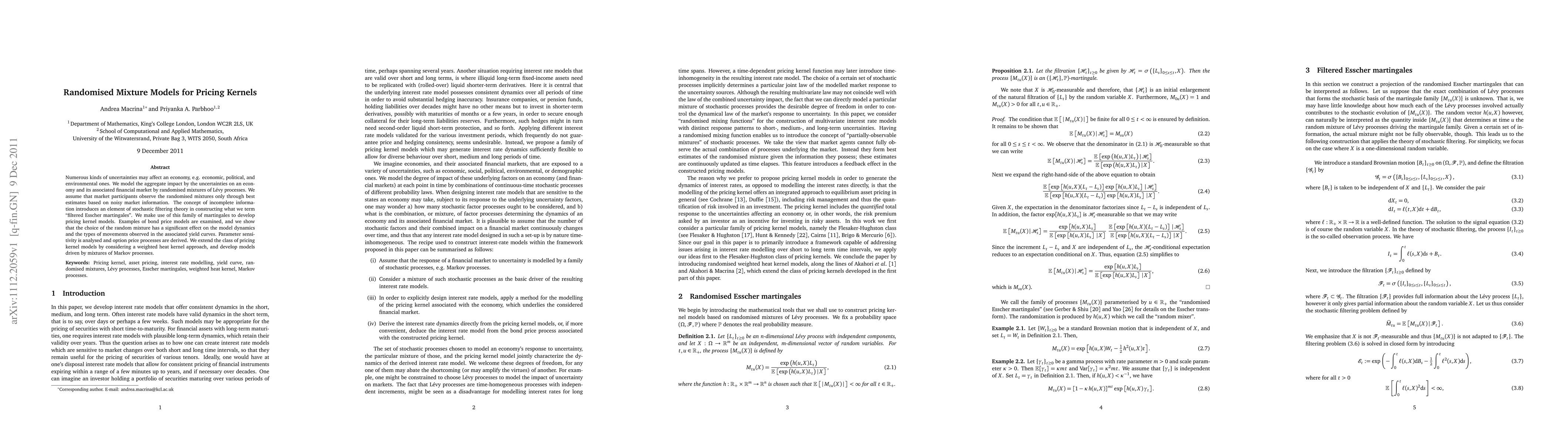 Numerous kinds of uncertainties may affect an economy, e.g. economic, political, and environmental ones. We model the aggregate impact by the uncertainties on an economy and its associated financial market by randomised mixtures of L\'evy processes. We assume that market participants observe the randomised mixtures only through best estimates based on noisy market information. The concept of incomplete information introduces an element of stochastic filtering theory in constructing what we term "filtered Esscher martingales". We make use of this family of martingales to develop pricing kernel models. Examples of bond price models are examined, and we show that the choice of the random mixture has a significant effect on the model dynamics and the types of movements observed in the associated yield curves. Parameter sensitivity is analysed and option price processes are derived. We extend the class of pricing kernel models by considering a weighted heat kernel approach, and develop models driven by mixtures of Markov processes.