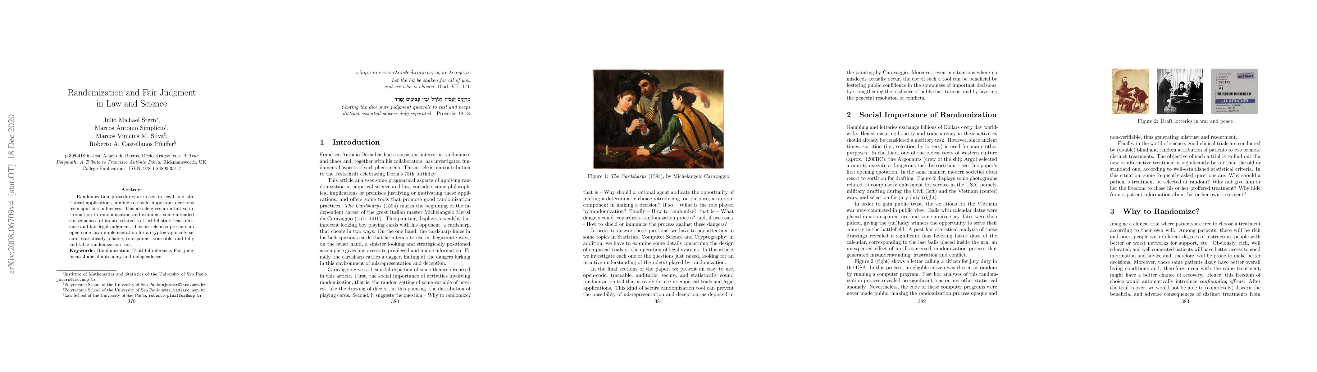 Randomization procedures are used in legal and statistical applications, aiming to shield important decisions from spurious influences. This article gives an intuitive introduction to randomization and examines some intended consequences of its use related to truthful statistical inference and fair legal judgment. This article also presents an open-code Java implementation for a cryptographically secure, statistically reliable, transparent, traceable, and fully auditable randomization tool.