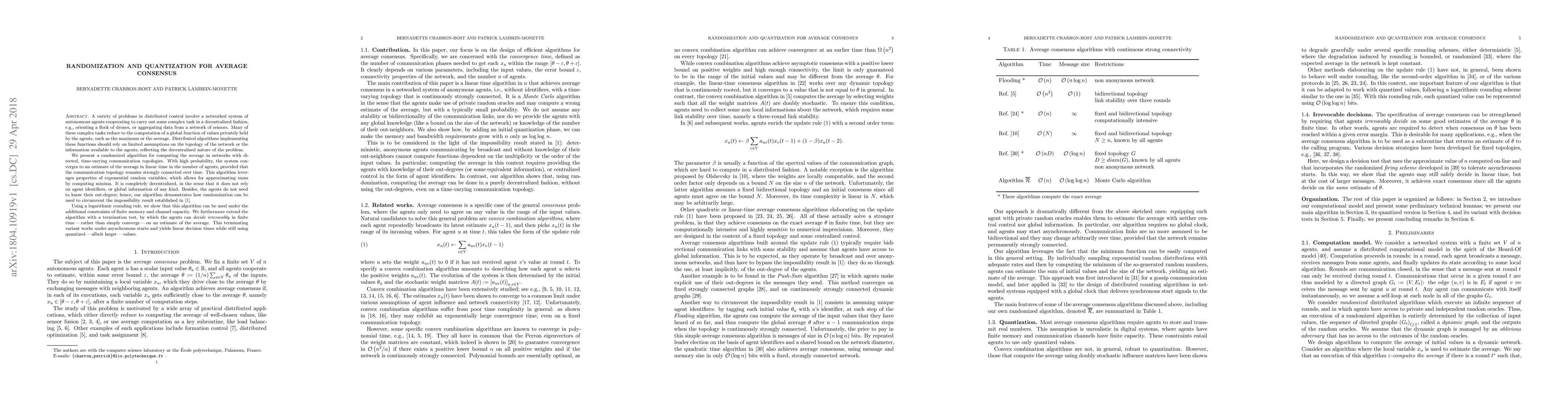 A variety of problems in distributed control involve a networked system of autonomous agents cooperating to carry out some complex task in a decentralized fashion, e.g., orienting a flock of drones, or aggregating data from a network of sensors. Many of these complex tasks reduce to the computation of a global function of values privately held by the agents, such as the maximum or the average. Distributed algorithms implementing these functions should rely on limited assumptions on the topology of the network or the information available to the agents, reflecting the decentralized nature of the problem. We present a randomized algorithm for computing the average in networks with directed, time-varying communication topologies. With high probability, the system converges to an estimate of the average in linear time in the number of agents, provided that the communication topology remains strongly connected over time. This algorithm leverages properties of exponential random variables, which allows for approximating sums by computing minima. It is completely decentralized, in the sense that it does not rely on agent identifiers, or global information of any kind. Besides, the agents do not need to know their out-degree; hence, our algorithm demonstrates how randomization can be used to circumvent the impossibility result established in [1]. Using a logarithmic rounding rule, we show that this algorithm can be used under the additional constraints of finite memory and channel capacity. We furthermore extend the algorithm with a termination test, by which the agents can decide irrevocably in finite time - rather than simply converge - on an estimate of the average. This terminating variant works under asynchronous starts and yields linear decision times while still using quantized - albeit larger - values.