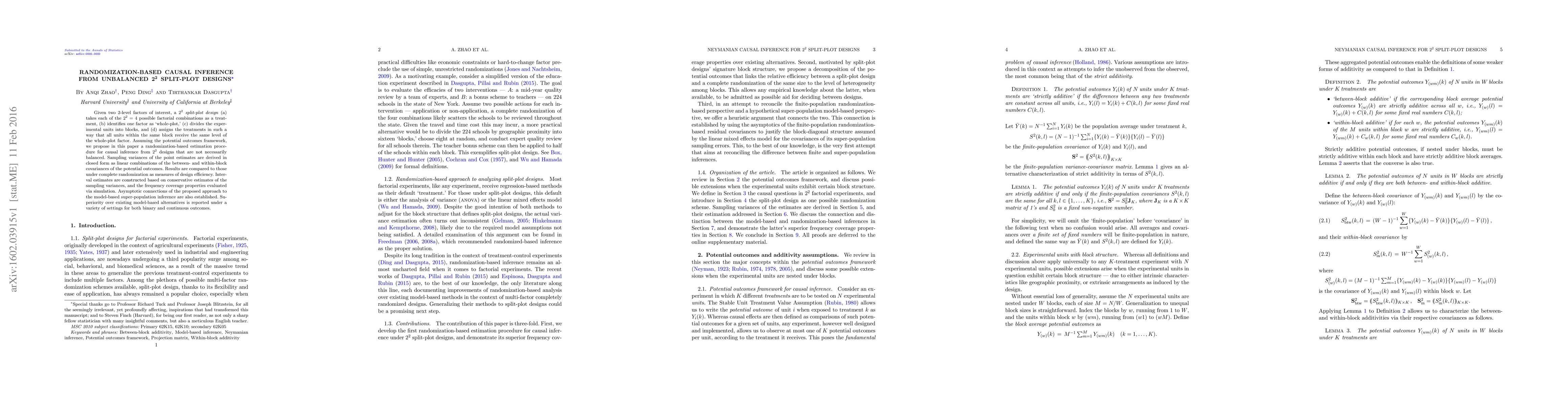 This paper proposes a randomization-based causal inference method for unbalanced 2^2 split-plot designs, deriving sampling variances in closed form and comparing design efficiency to complete randomization. The method shows superior performance over model-based alternatives in simulations for both binary and continuous outcomes.