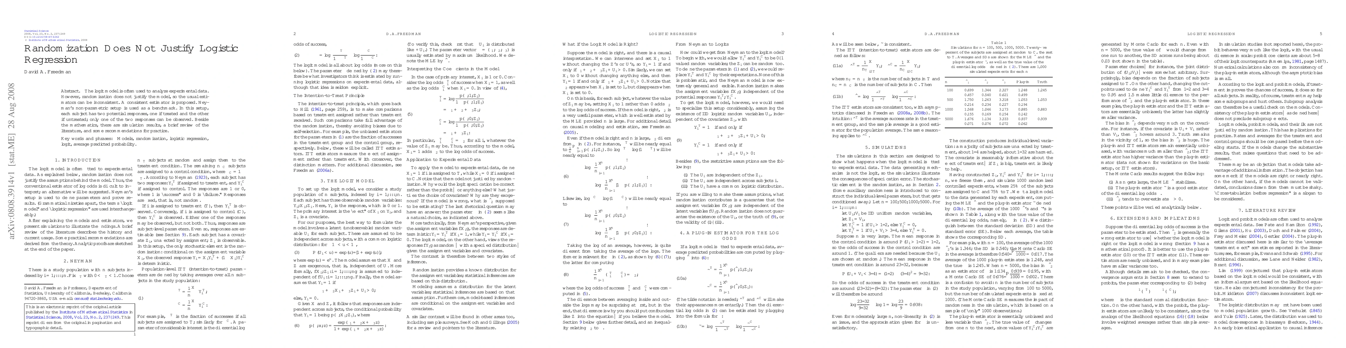 The logit model is often used to analyze experimental data. However, randomization does not justify the model, so the usual estimators can be inconsistent. A consistent estimator is proposed. Neyman's non-parametric setup is used as a benchmark. In this setup, each subject has two potential responses, one if treated and the other if untreated; only one of the two responses can be observed. Beside the mathematics, there are simulation results, a brief review of the literature, and some recommendations for practice.