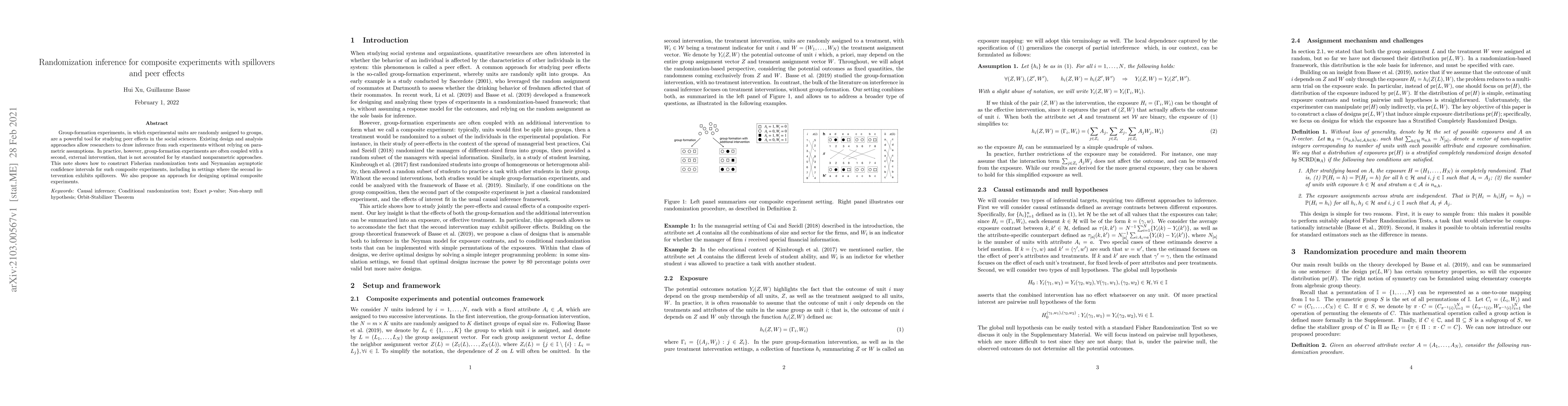 The paper presents a method for constructing Fisherian randomization tests and Neymanian asymptotic confidence intervals for composite experiments involving spillovers and peer effects, proposing an approach for designing optimal composite experiments.