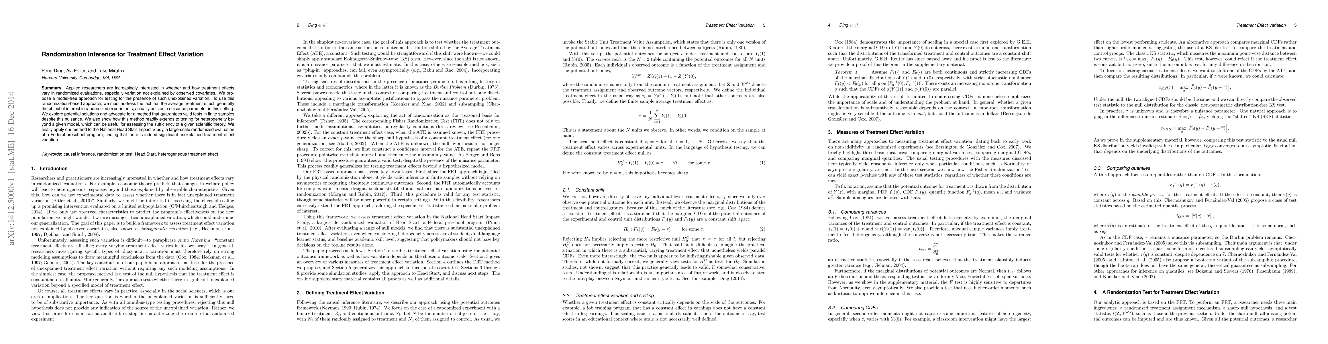 This paper proposes a model-free randomization inference method to test for unexplained variation in treatment effects in randomized evaluations, addressing the average treatment effect as a nuisance parameter. The method is applied to the National Head Start Impact Study, revealing significant unexplained treatment effect heterogeneity.