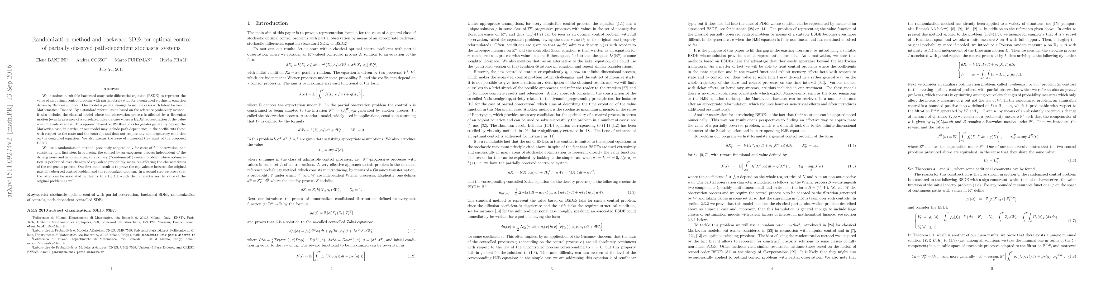 This paper develops a randomization method for stochastic control of partially observed, path-dependent systems without non-degeneracy conditions. It establishes equivalence between primal and randomized control problems, linking the latter to a backward SDE and deriving a randomized dynamic programming principle.