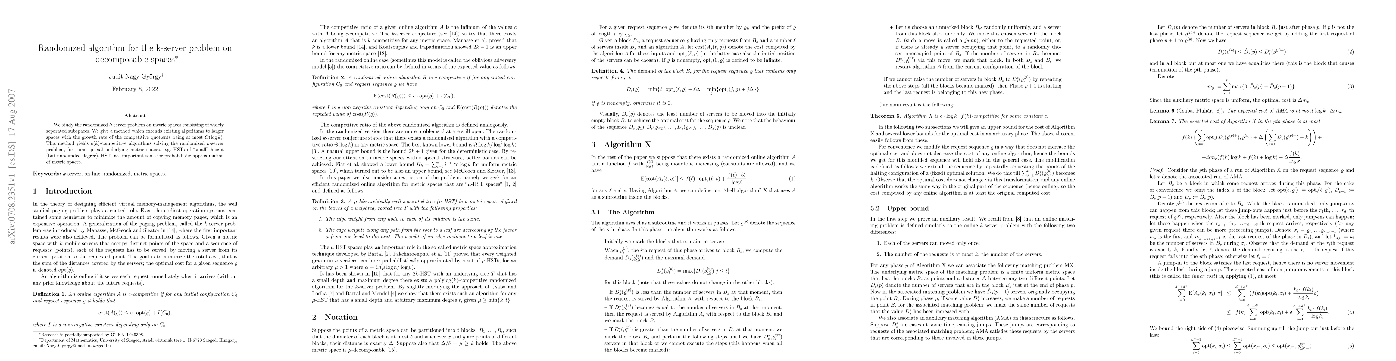 This paper presents a randomized algorithm for the k-server problem on metric spaces with separable subspaces, achieving a competitive quotient of O(log k) and o(k)-competitive performance for specific spaces like HSTs of "small" height. The method extends existing algorithms to larger spaces effectively.