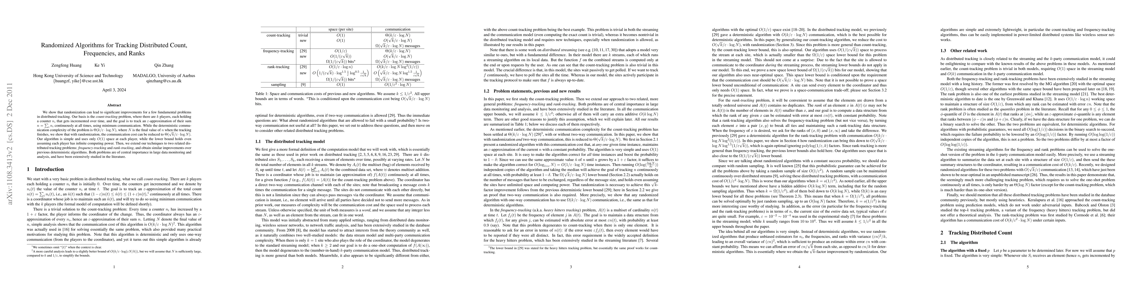 We show that randomization can lead to significant improvements for a few fundamental problems in distributed tracking. Our basis is the {\em count-tracking} problem, where there are $k$ players, each holding a counter $n_i$ that gets incremented over time, and the goal is to track an $\eps$-approximation of their sum $n=\sum_i n_i$ continuously at all times, using minimum communication. While the deterministic communication complexity of the problem is $\Theta(k/\eps \cdot \log N)$, where $N$ is the final value of $n$ when the tracking finishes, we show that with randomization, the communication cost can be reduced to $\Theta(\sqrt{k}/\eps \cdot \log N)$. Our algorithm is simple and uses only O(1) space at each player, while the lower bound holds even assuming each player has infinite computing power. Then, we extend our techniques to two related distributed tracking problems: {\em frequency-tracking} and {\em rank-tracking}, and obtain similar improvements over previous deterministic algorithms. Both problems are of central importance in large data monitoring and analysis, and have been extensively studied in the literature.