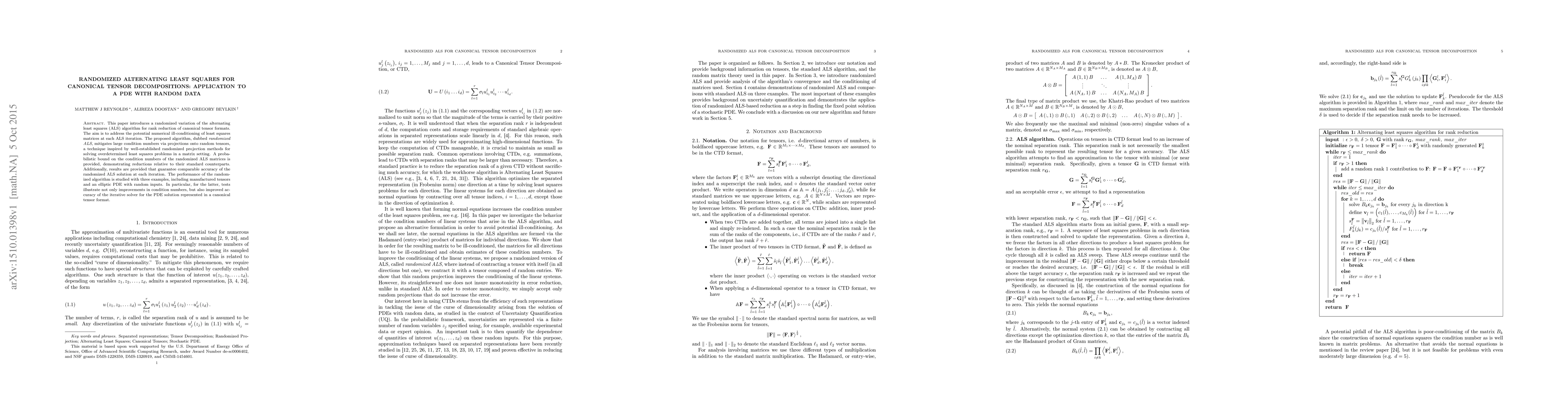 A new algorithm called randomized ALS is introduced to mitigate numerical ill-conditioning in tensor decompositions, providing a probabilistic bound on condition numbers and comparable accuracy to traditional methods.