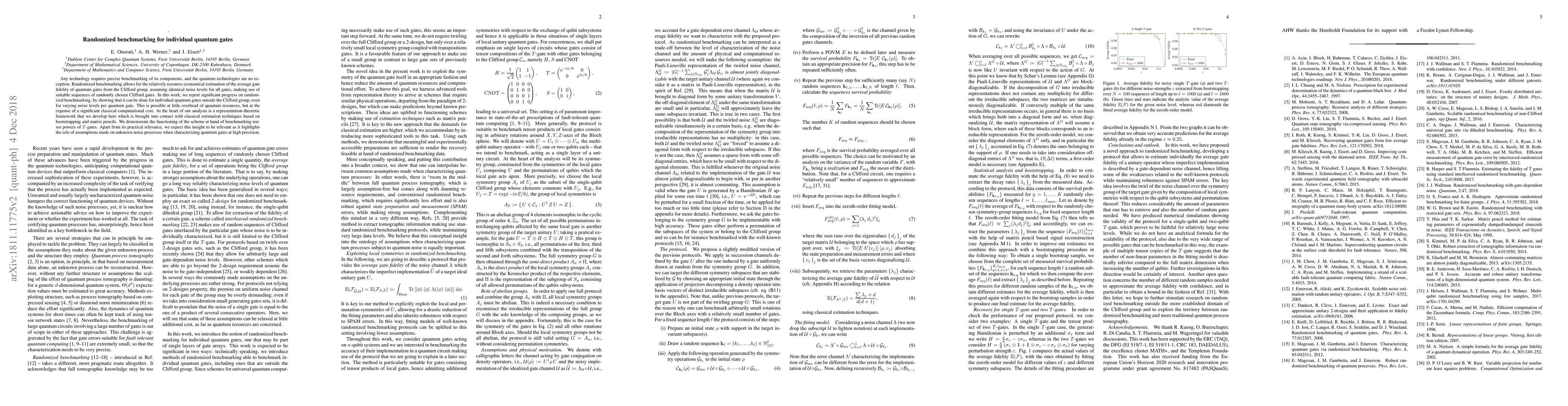 Any technology requires precise benchmarking of its components, and the quantum technologies are no exception. Randomized benchmarking allows for the relatively resource economical estimation of the average gate fidelity of quantum gates from the Clifford group, assuming identical noise levels for all gates, making use of suitable sequences of randomly chosen Clifford gates. In this work, we report significant progress on randomized benchmarking, by showing that it can be done for individual quantum gates outside the Clifford group, even for varying noise levels per quantum gate. This is possible at little overhead of quantum resources, but at the expense of a significant classical computational cost. At the heart of our analysis is a representation-theoretic framework that we develop here which is brought into contact with classical estimation techniques based on bootstrapping and matrix pencils. We demonstrate the functioning of the scheme at hand of benchmarking tensor powers of T-gates. Apart from its practical relevance, we expect this insight to be relevant as it highlights the role of assumptions made on unknown noise processes when characterizing quantum gates at high precision.