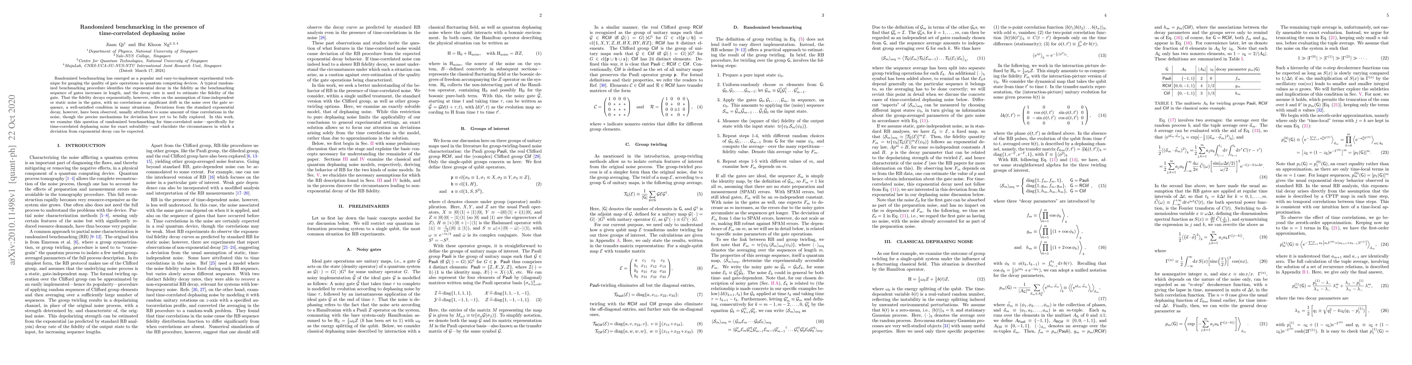 This paper investigates randomized benchmarking in quantum computing under time-correlated dephasing noise, exploring when the fidelity decay deviates from the standard exponential decay and identifying the precise mechanisms behind such deviations.