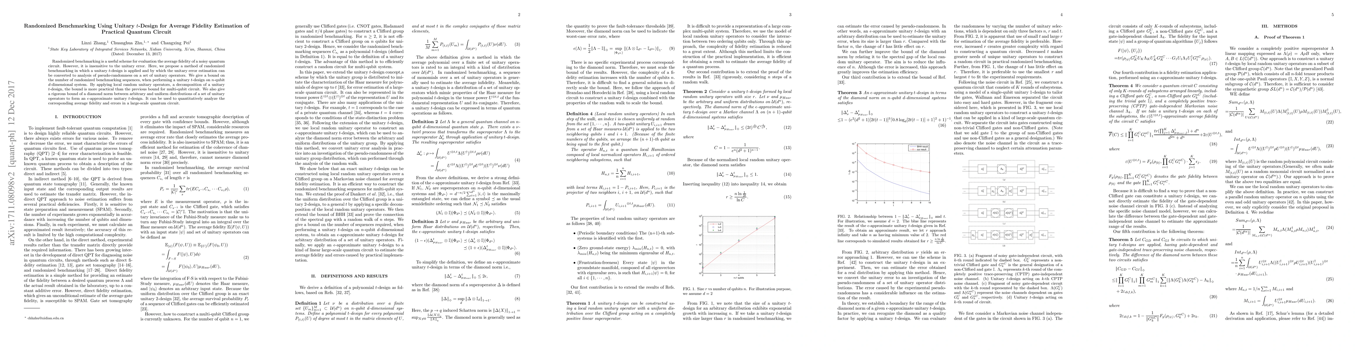 This paper proposes a randomized benchmarking method using unitary t-designs to estimate average fidelity in noisy quantum circuits, converting unitary error estimation into pseudo-randomness analysis. It provides a practical bound for the number of sequences needed and a rigorous bound for the diamond norm to form an ε-approximate unitary t-design, enhancing fidelity and error analysis in large-scale quantum circuits.