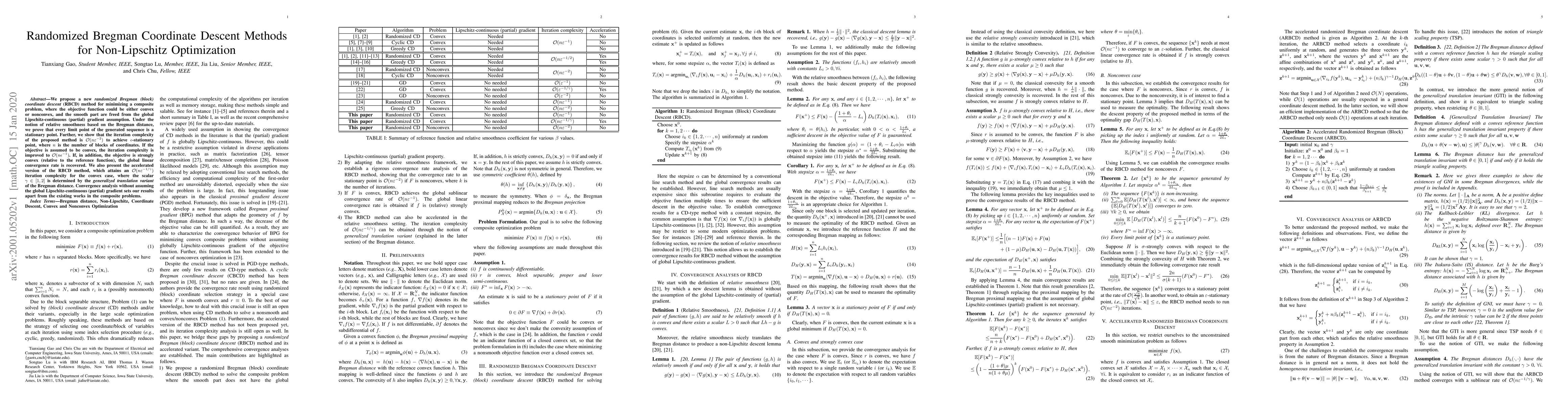 This paper introduces a randomized Bregman coordinate descent method for non-Lipschitz optimization problems, proving convergence without requiring global Lipschitz continuity. The method achieves an iteration complexity of $O(n\varepsilon^{-2})$ for nonconvex objectives and $O(n\varepsilon^{-1})$ for convex ones, with accelerated versions attaining $O(n\varepsilon^{-1/\gamma})$ for convex objectives.
