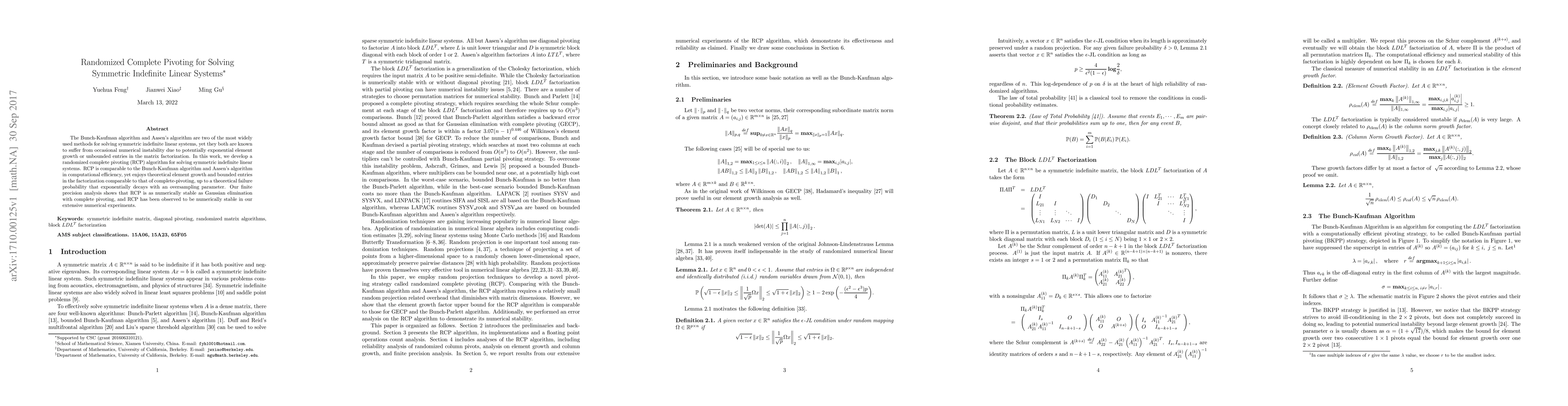 This paper proposes a randomized complete pivoting (RCP) algorithm for solving symmetric indefinite linear systems, which offers improved numerical stability compared to the Bunch-Kaufman and Aasen's algorithms by avoiding exponential element growth and unbounded entries, while maintaining computational efficiency. The RCP method is shown to be as numerically stable as Gaussian elimination with complete pivoting in finite precision analysis and practical experiments.