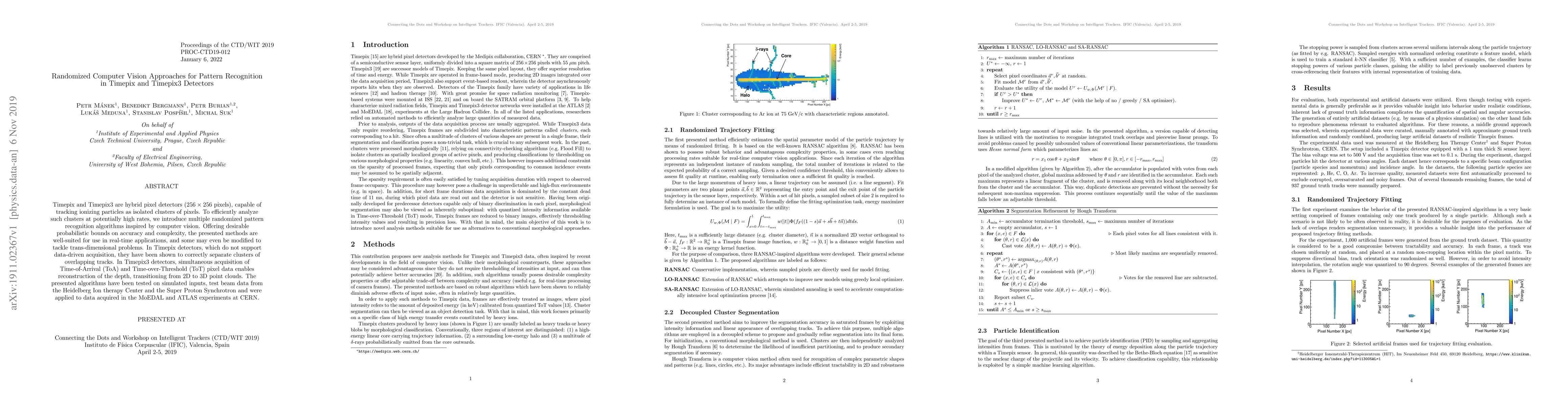 This paper introduces randomized computer vision algorithms for pattern recognition in Timepix and Timepix3 detectors, which track ionizing particles. These methods offer probabilistic accuracy and complexity bounds, enabling real-time analysis and cluster separation in Timepix detectors, while also reconstructing 3D point clouds in Timepix3 detectors using ToA and ToT data.