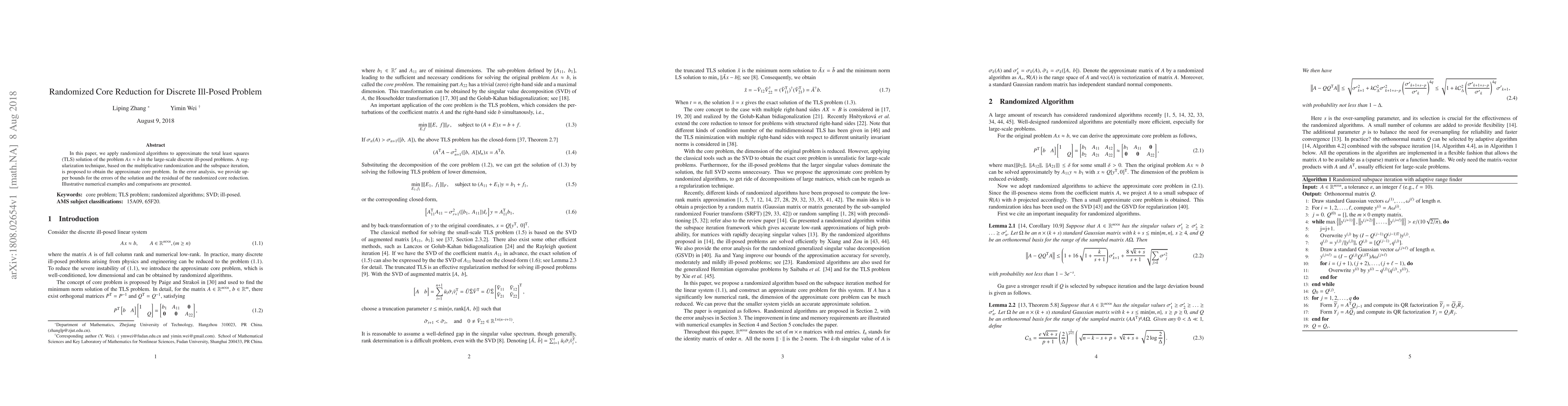 Researchers propose a randomized algorithm to solve large-scale discrete ill-posed problems by reducing the core of the problem, providing bounds on errors and illustrating its effectiveness through numerical examples.