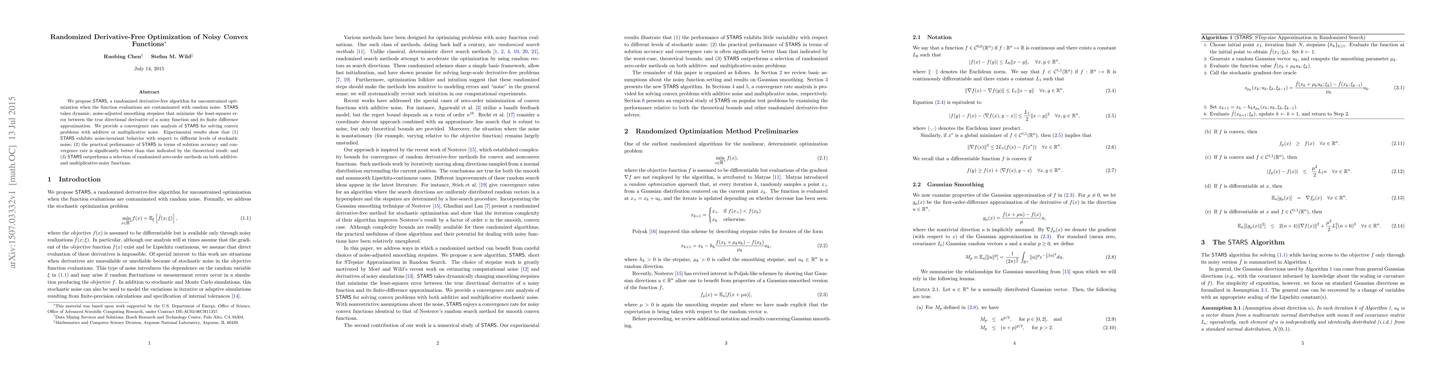 This paper introduces STARS, a randomized derivative-free optimization algorithm for noisy convex functions, which dynamically adjusts step-sizes to minimize least-squares error. Experimental results demonstrate that STARS maintains performance under varying noise levels and outperforms other randomized zero-order methods.