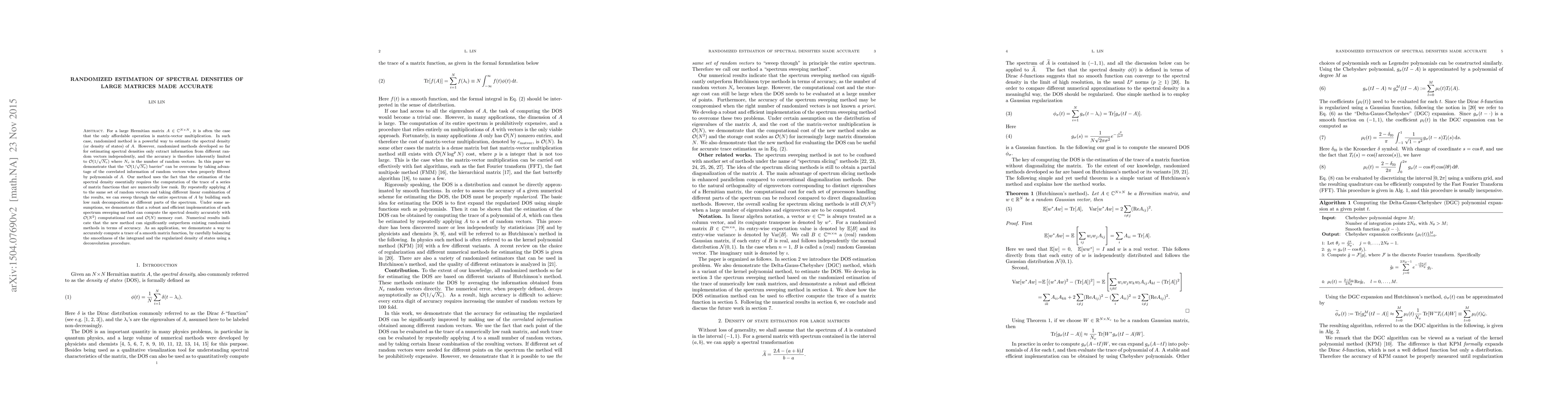 For a large Hermitian matrix $A\in \mathbb{C}^{N\times N}$, it is often the case that the only affordable operation is matrix-vector multiplication. In such case, randomized method is a powerful way to estimate the spectral density (or density of states) of $A$. However, randomized methods developed so far for estimating spectral densities only extract information from different random vectors independently, and the accuracy is therefore inherently limited to $\mathcal{O}(1/\sqrt{N_{v}})$ where $N_{v}$ is the number of random vectors. In this paper we demonstrate that the "$\mathcal{O}(1/\sqrt{N_{v}})$ barrier" can be overcome by taking advantage of the correlated information of random vectors when properly filtered by polynomials of $A$. Our method uses the fact that the estimation of the spectral density essentially requires the computation of the trace of a series of matrix functions that are numerically low rank. By repeatedly applying $A$ to the same set of random vectors and taking different linear combination of the results, we can sweep through the entire spectrum of $A$ by building such low rank decomposition at different parts of the spectrum. Under some assumptions, we demonstrate that a robust and efficient implementation of such spectrum sweeping method can compute the spectral density accurately with $\mathcal{O}(N^2)$ computational cost and $\mathcal{O}(N)$ memory cost. Numerical results indicate that the new method can significantly outperform existing randomized methods in terms of accuracy. As an application, we demonstrate a way to accurately compute a trace of a smooth matrix function, by carefully balancing the smoothness of the integrand and the regularized density of states using a deconvolution procedure.