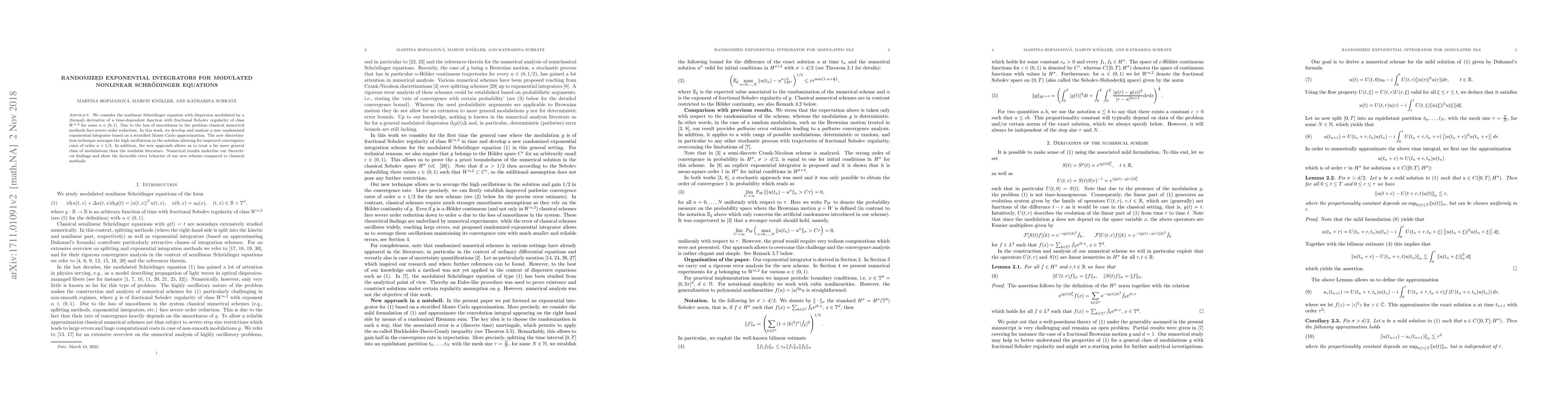 We consider the nonlinear Schr\"odinger equation with dispersion modulated by a (formal) derivative of a time-dependent function with fractional Sobolev regularity of class $W^{\alpha,2}$ for some $\alpha\in (0,1)$. Due to the loss of smoothness in the problem classical numerical methods face severe order reduction. In this work, we develop and analyze a new randomized exponential integrator based on a stratified Monte Carlo approximation. The new discretization technique averages the high oscillations in the solution allowing for improved convergence rates of order $\alpha+1/2$. In addition, the new approach allows us to treat a far more general class of modulations than the available literature. Numerical results underline our theoretical findings and show the favorable error behavior of our new scheme compared to classical methods.
