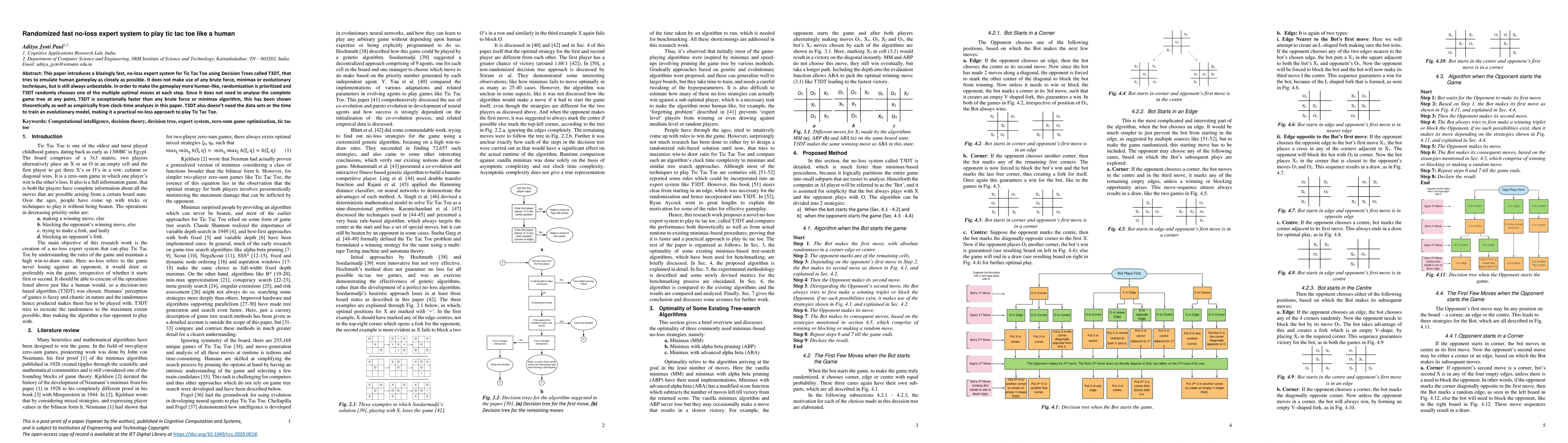This paper presents T3DT, a fast, no-loss expert system for Tic Tac Toe that uses Decision Trees to emulate human gameplay without brute force or evolutionary techniques. T3DT's randomization of optimal moves makes it exceptionally fast and unbeatable compared to traditional algorithms.
