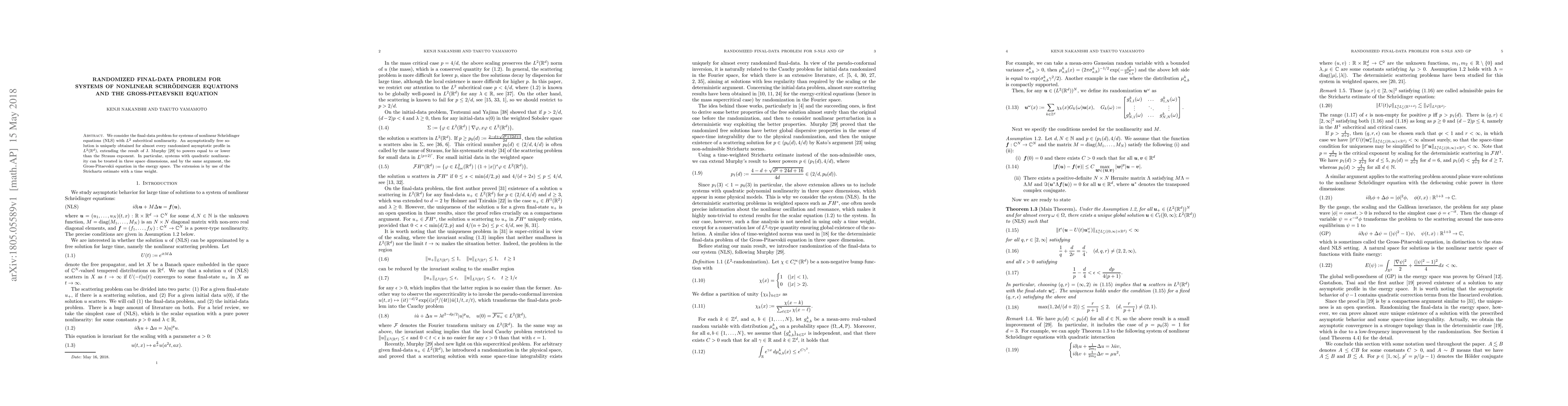 We consider the final-data problem for systems of nonlinear Schr\"odinger equations with $L^2$ subcritical nonlinearity. An asymptotically free solution is uniquely obtained for almost every randomized asymptotic profile in $L^2(\mathbb{R}^d)$, extending the result of J. Murphy to powers equal to or lower than the Strauss exponent. In particular, systems with quadratic nonlinearity can be treated in three space dimensions, and by the same argument, the Gross-Pitaevskii equation in the energy space. The extension is by use of the Strichartz estimate with a time weight.