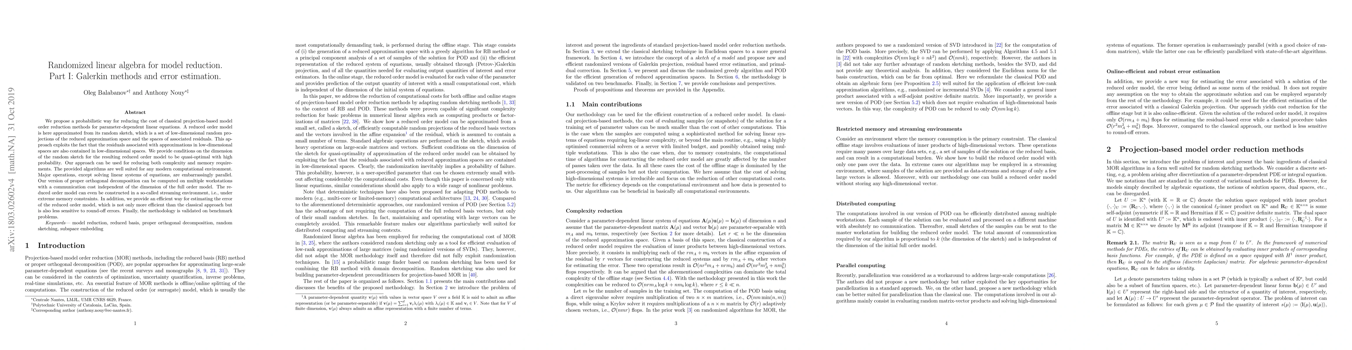 Researchers develop a probabilistic method for reducing complexity of linear equations through random projections, achieving quasi-optimal models with high probability while minimizing memory requirements.