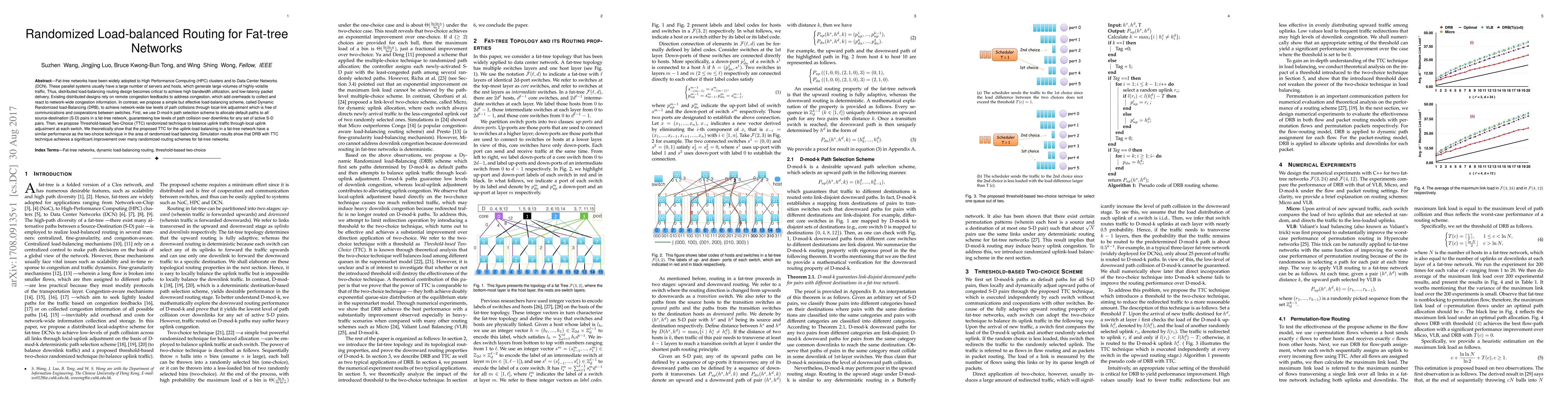 Researchers propose a new load-balancing scheme for fat-tree networks, called Dynamic Randomized Load-Balancing (DRB), which improves network performance with low latency and high bandwidth utilization through local link adjustments.