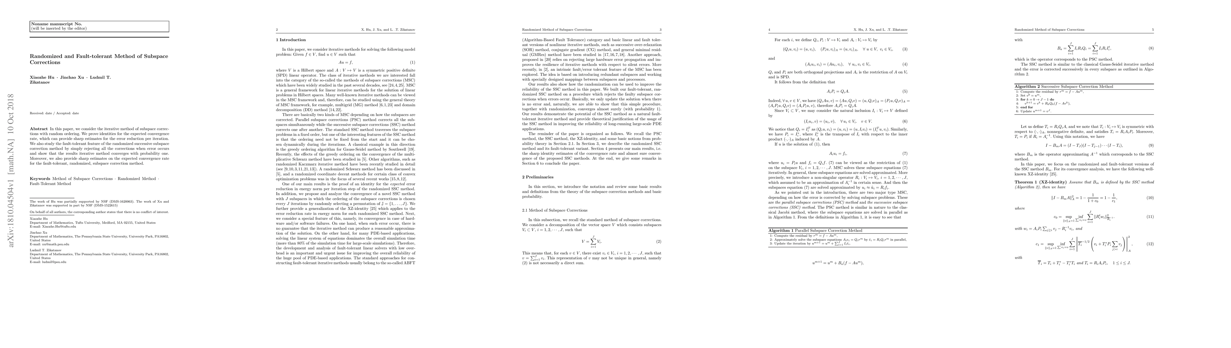 This paper introduces a randomized method of subspace corrections that improves convergence rates and fault-tolerance with probability one.