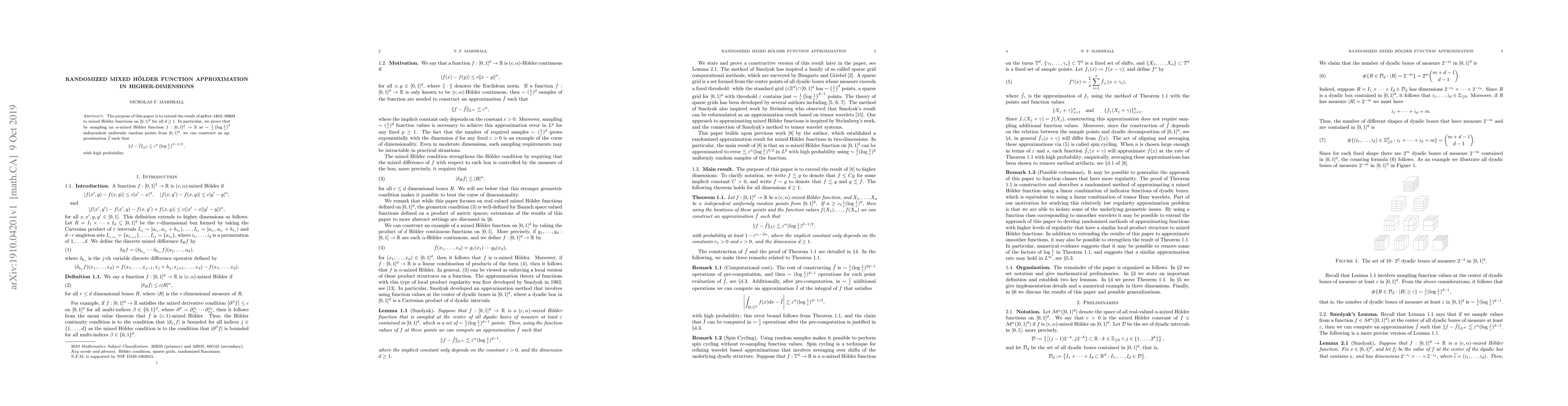 This paper extends previous work to approximate mixed Hölder functions in higher dimensions. By randomly sampling the function at approximately 1/ε (log 1/ε)^d points, it constructs an approximation with an L2 error of ε^α (log 1/ε)^(d-1/2), ensuring high probability of accuracy.