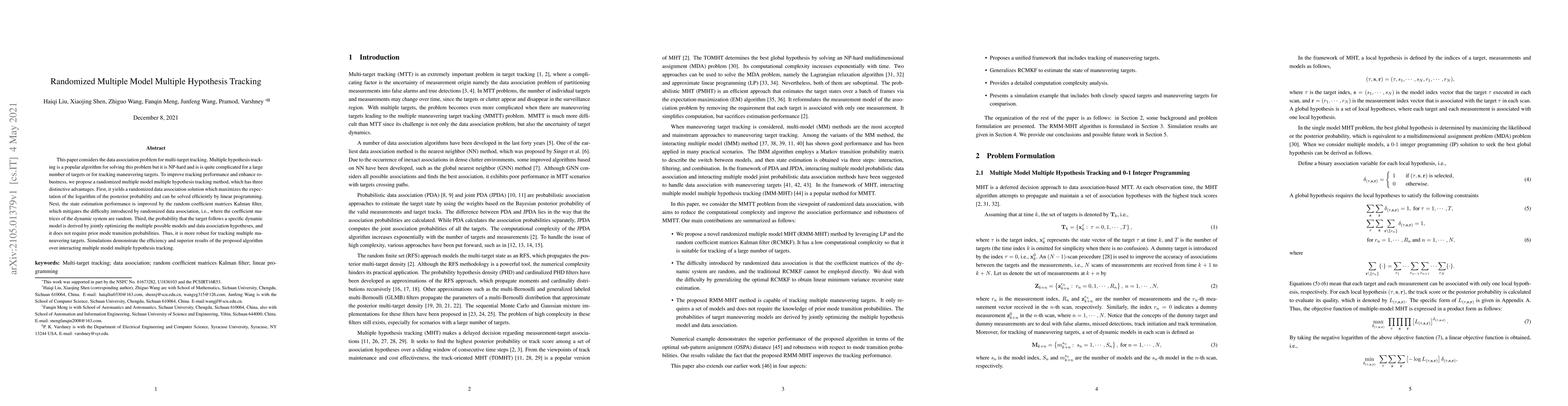 This paper proposes a randomized multiple model multiple hypothesis tracking method to improve data association and state estimation for multi-target tracking, leveraging efficient linear programming and a random coefficient matrices Kalman filter for enhanced robustness and performance. Simulations show superior results compared to traditional methods.