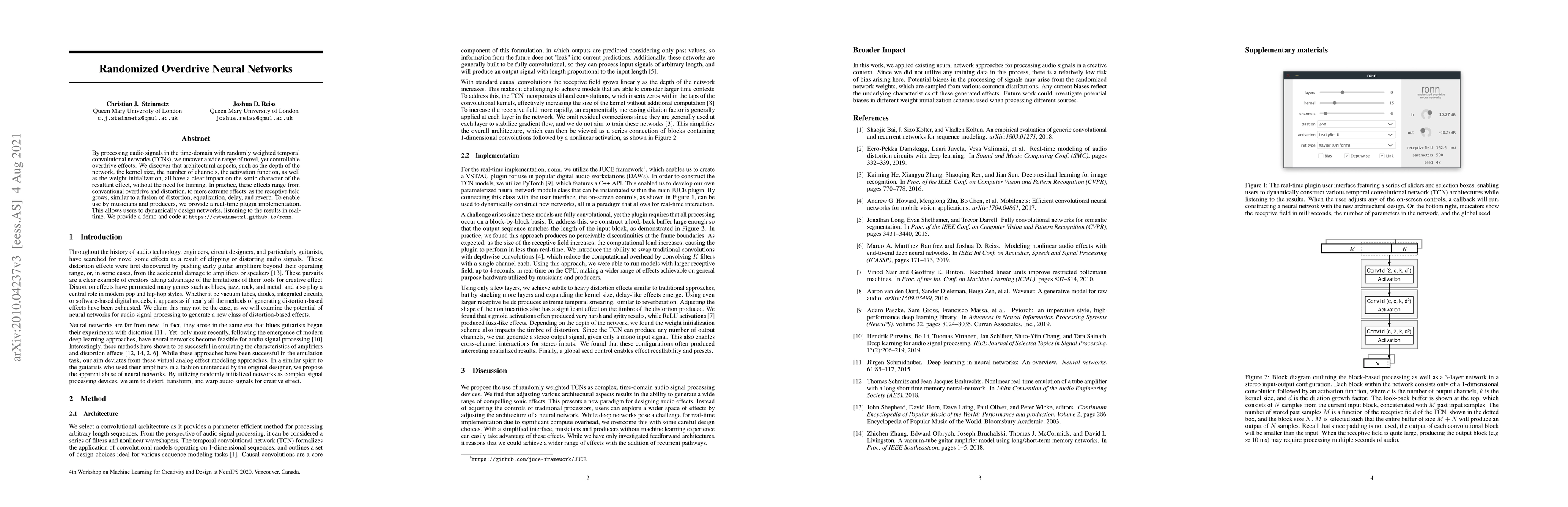 This paper introduces randomized overdrive neural networks (RONN) that generate a variety of controllable audio effects through time-domain processing with randomly weighted temporal convolutional networks. The network's architecture significantly influences the sonic output without requiring training, enabling real-time plugin use for musicians.