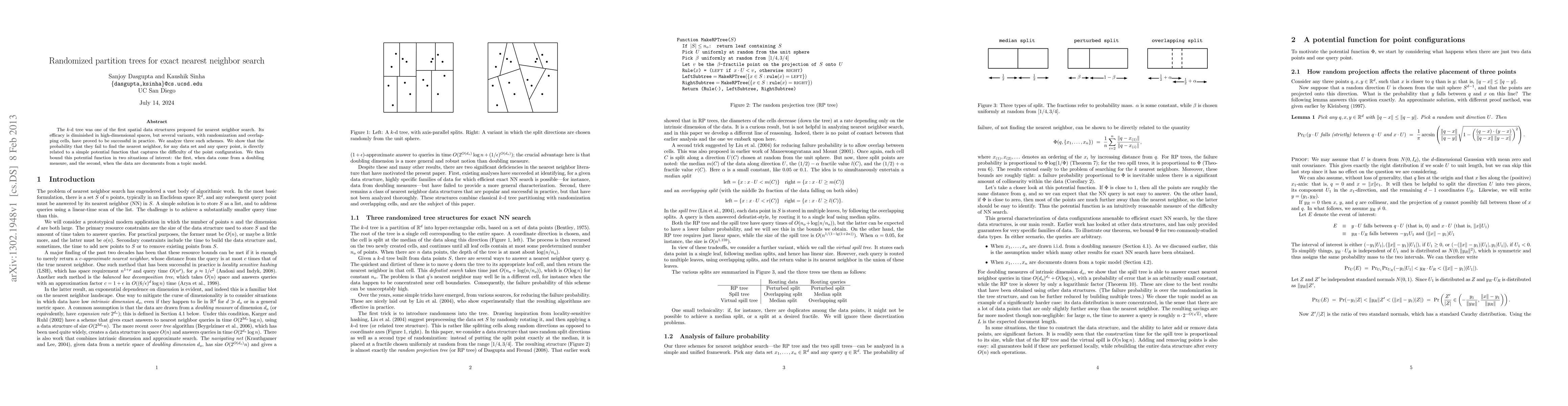 A study analyzes three spatial data structures for exact nearest neighbor search in high-dimensional spaces, showing a direct relationship between the probability of failure and a simple potential function capturing point configuration difficulty.