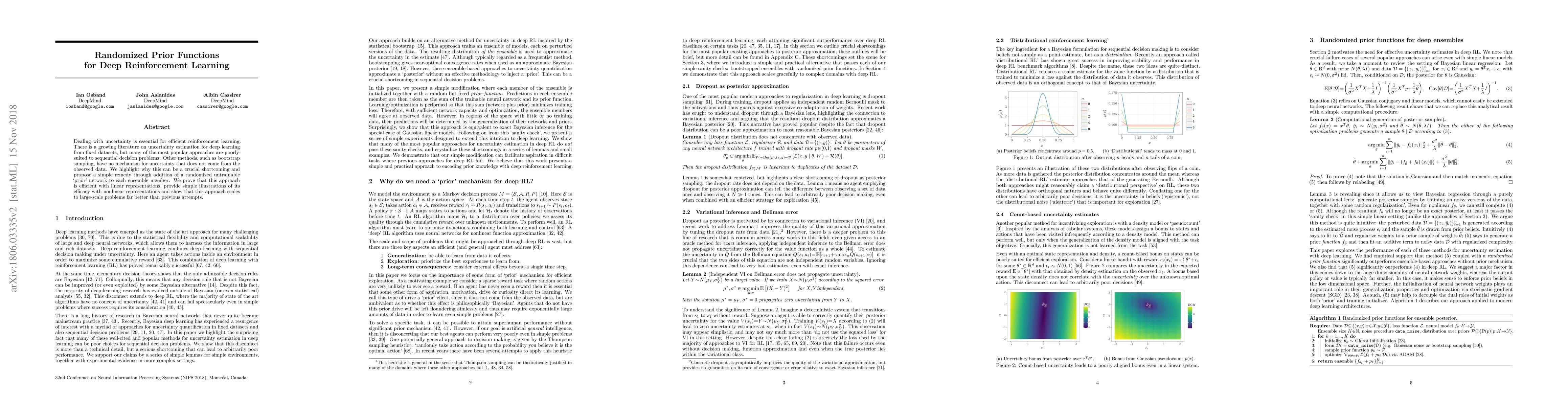 This paper proposes a solution for uncertainty handling in deep reinforcement learning, introducing a 'prior' network to ensemble members. It proves efficiency with linear representations, demonstrates efficacy with nonlinear ones, and shows scalability to large-scale problems, addressing a key shortcoming in sequential decision-making methods.