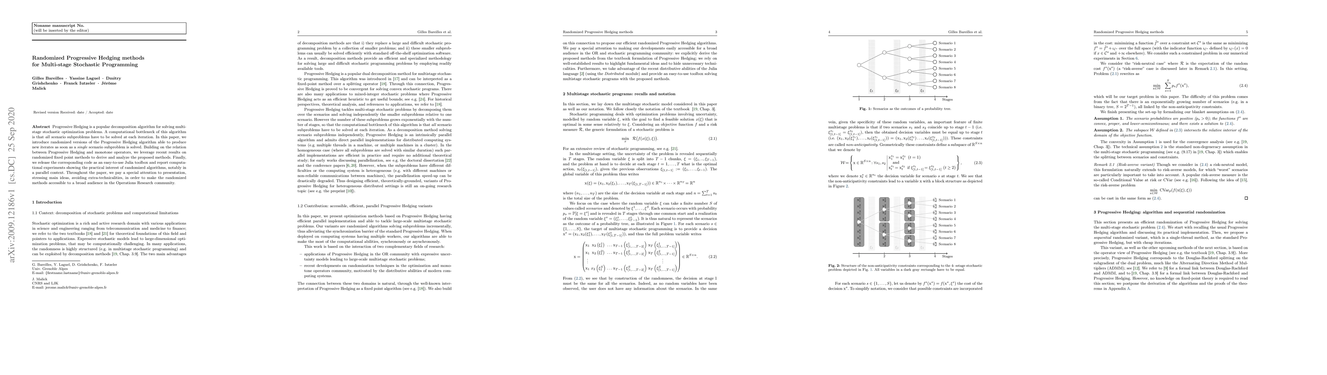 This paper introduces randomized Progressive Hedging methods for multi-stage stochastic programming, enabling faster solution of scenario subproblems, and demonstrates their practical interest in parallel computing.