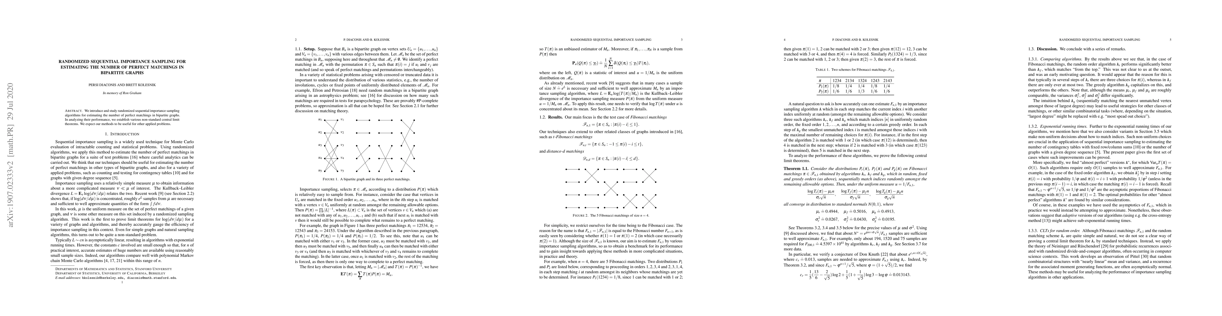 This paper proposes randomized sequential importance sampling algorithms to estimate the number of perfect matchings in bipartite graphs, and it analyzes their performance using non-standard central limit theorems, with potential applications to other applied problems.